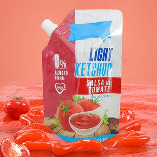 Bolsa con boquilla para cátsup, aderezo para ensalada, salsa fría, empaque resistente a altas temperaturas, retorta, compuesto de plástico, papel de aluminio, bolsa con boquilla