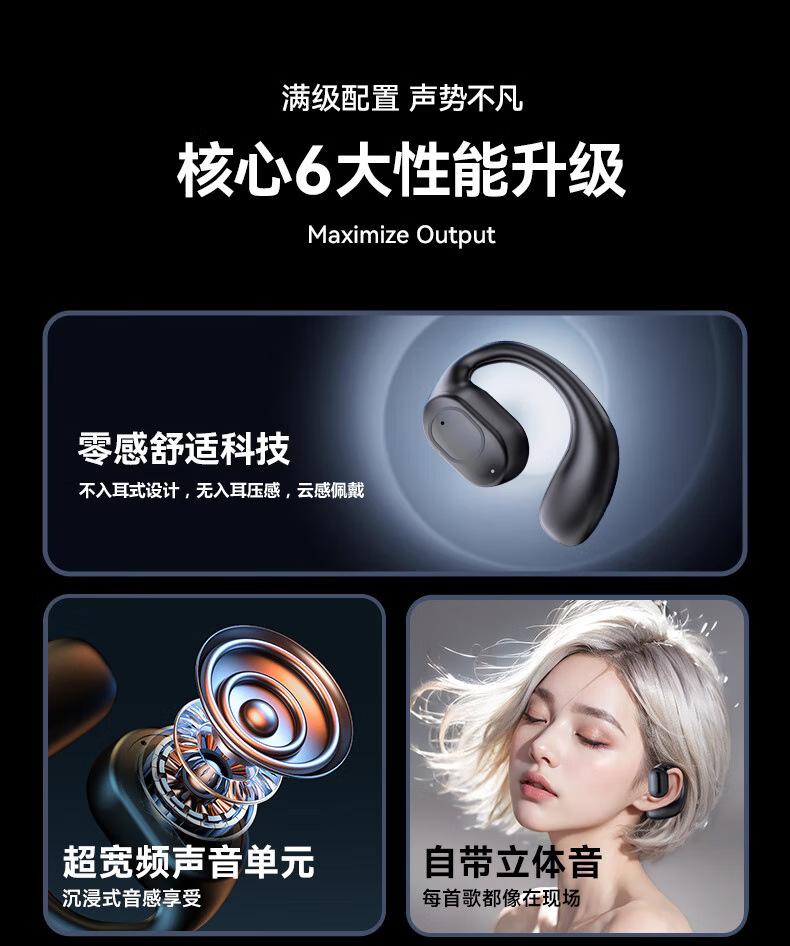 Audífono Bluetooth Inalámbrico Abierto, No Intraural, Deportivo con Gancho para la Oreja, Adecuado para Oppo, Huawei, Vivo, Apple y Xiaomi