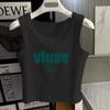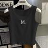 Verano Letra Estilo Tirantes Adelgazante Estilo Coreano Sin Mangas Casual Corto Fondo para Mujer Top Exterior
