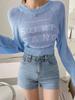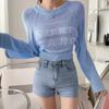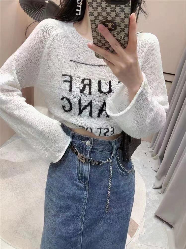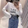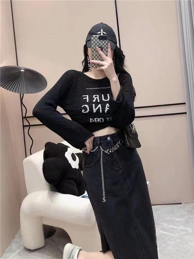Elegantes letras de moda que combinan con todo manga larga corto 2024 Verano nuevo estilo coreano sexy suéter camiseta top
