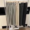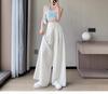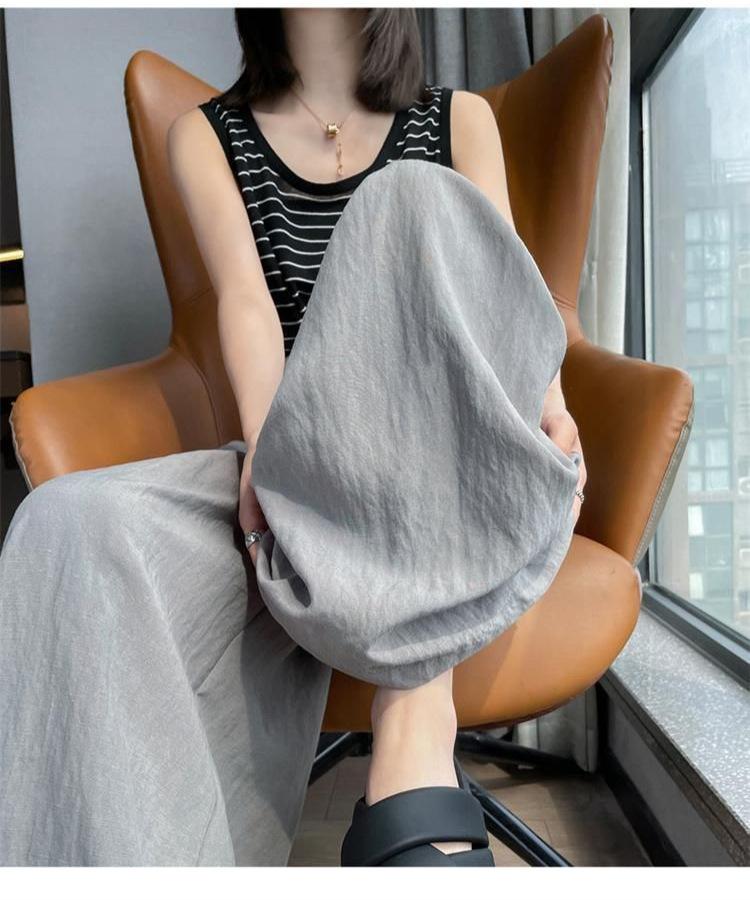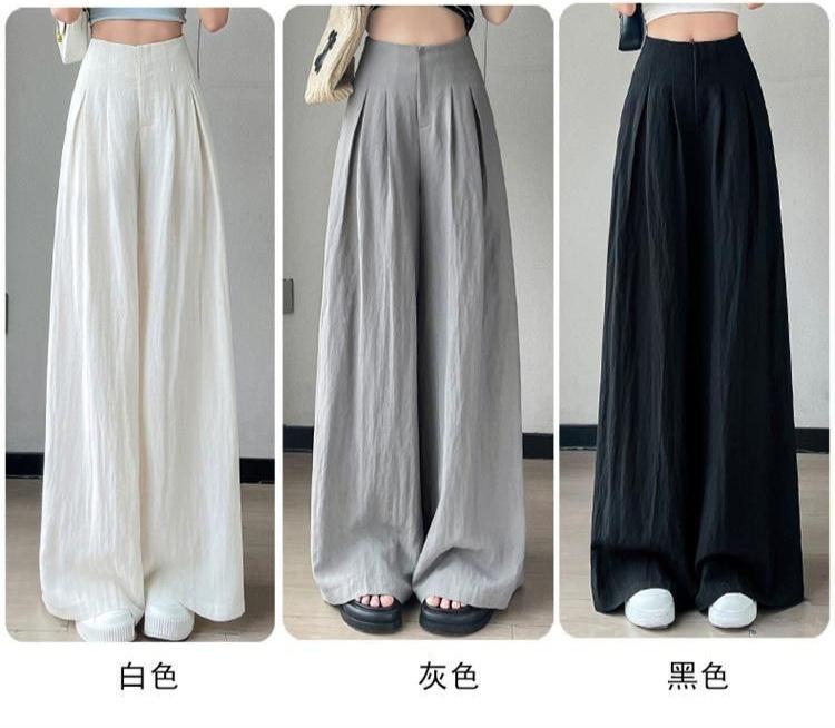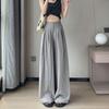 Pantalones grises de seda de hielo de pierna ancha para mujer 2025 Verano Nuevo Delgados de Cintura Alta Sueltos con Caída Estilo Lazy Cool Pantalones de Montaña