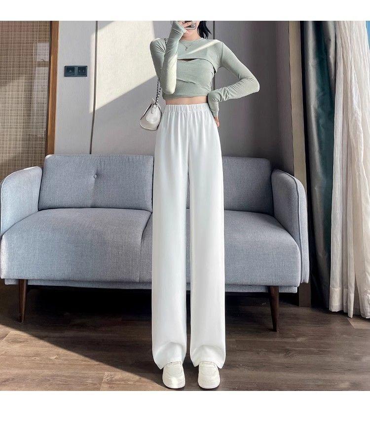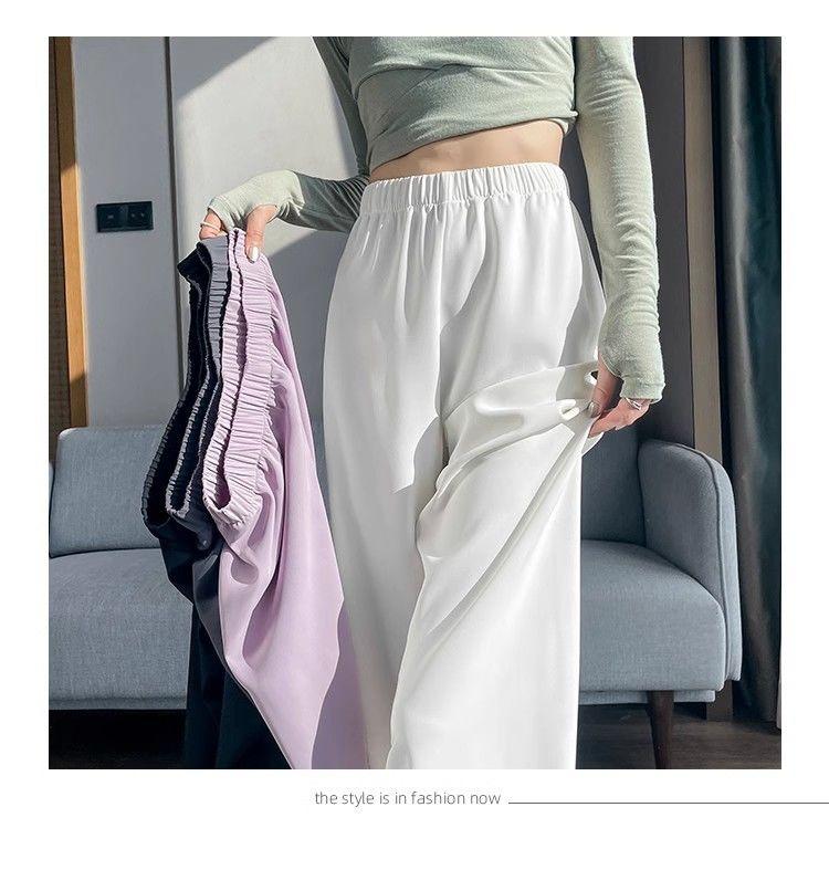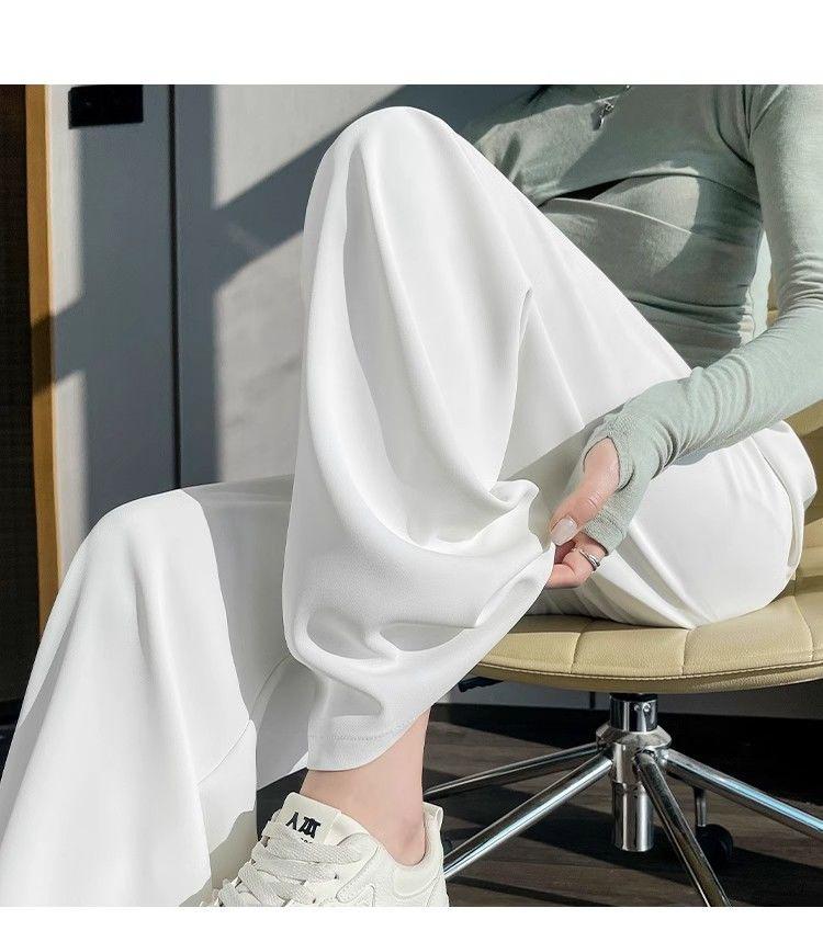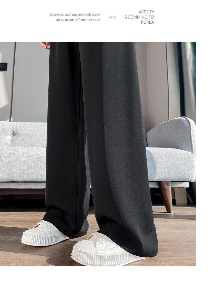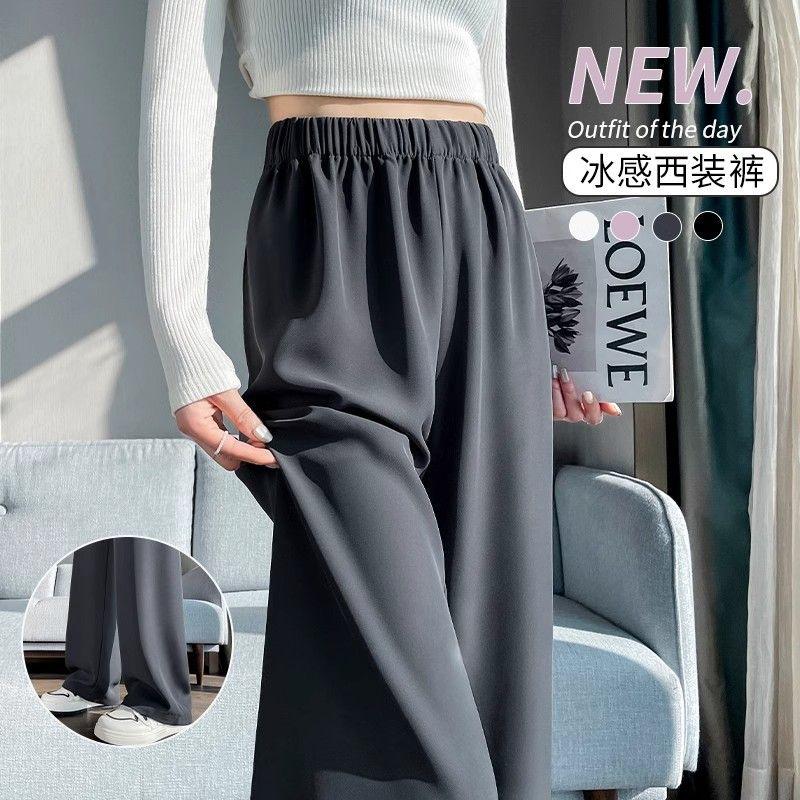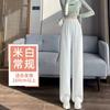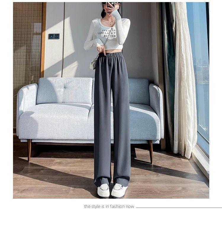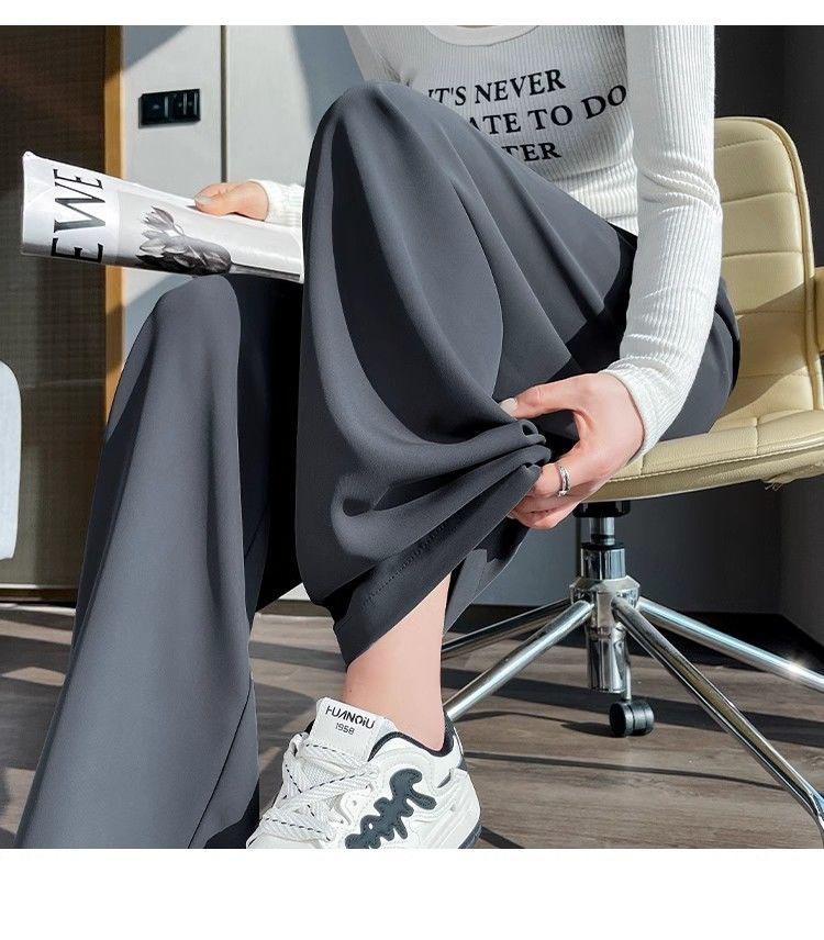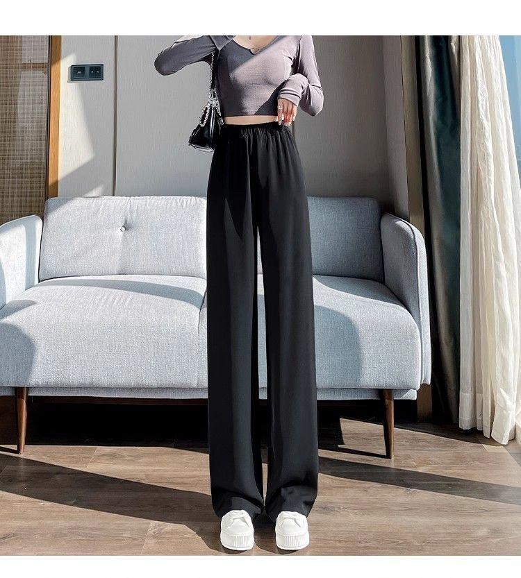 Pantalones de Verano Delgados para Mujer 2025 Pierna Ancha Nuevo Casual Recto Pequeño Traje Negro Pantalones de Cintura Alta