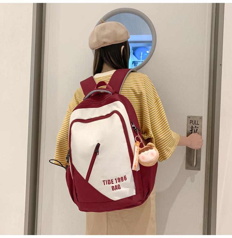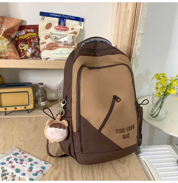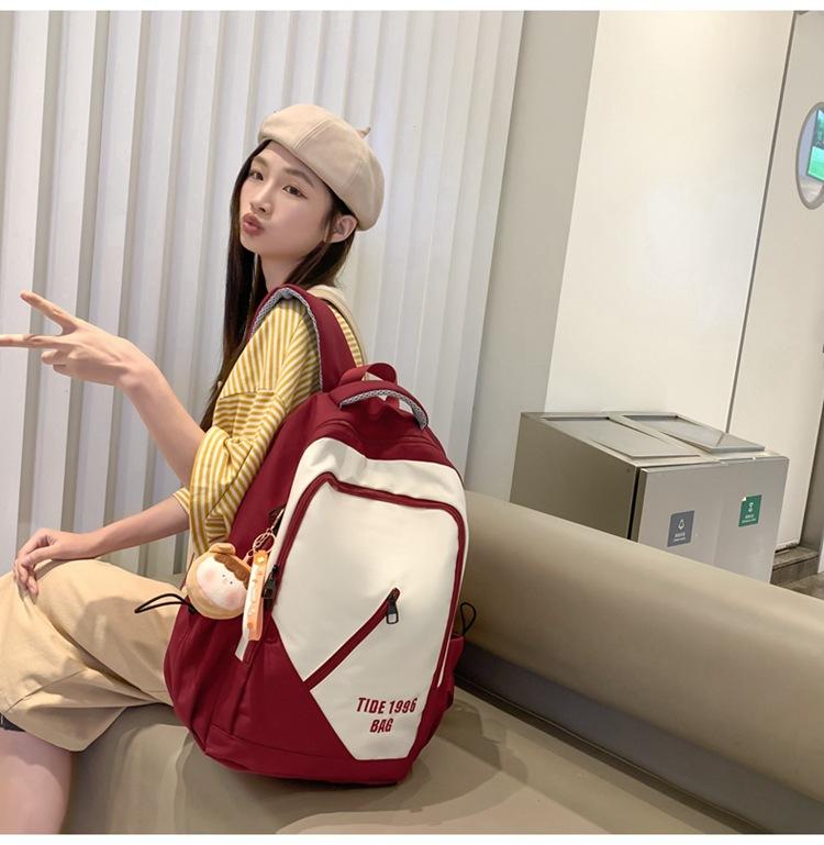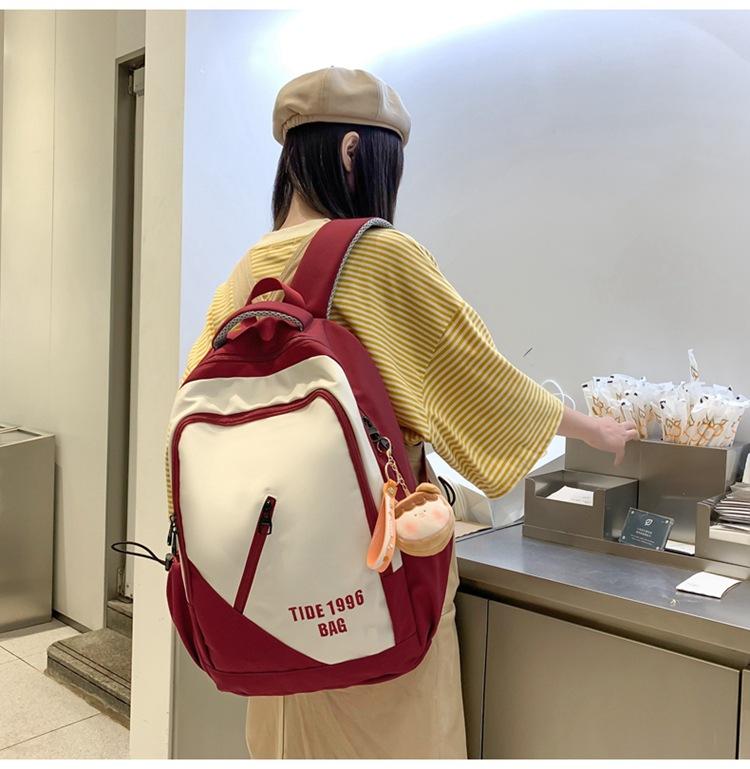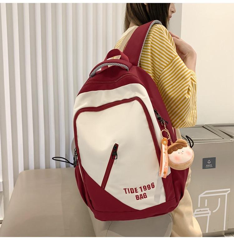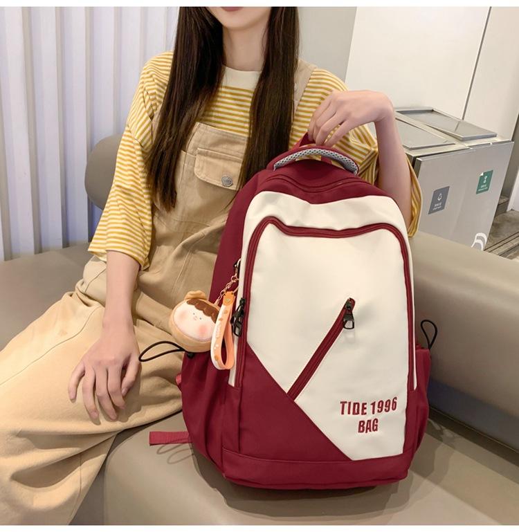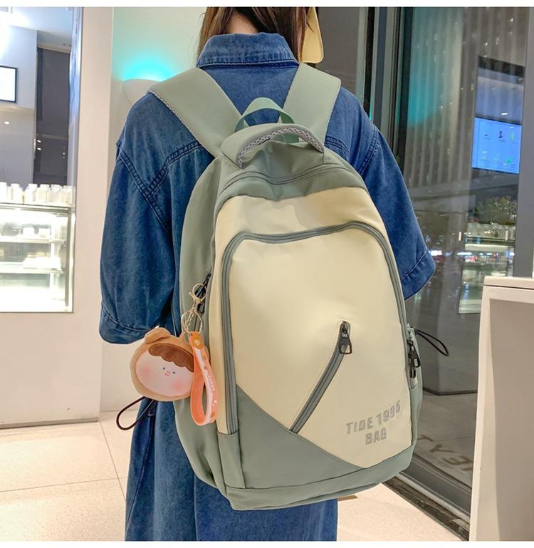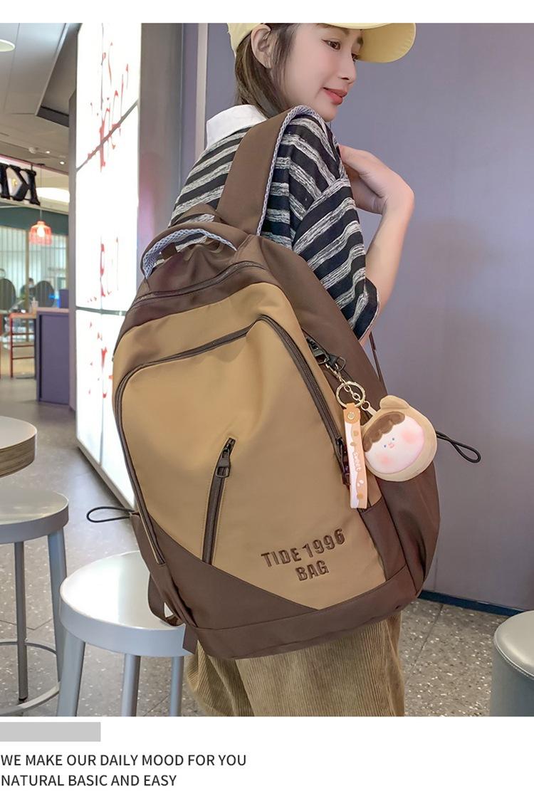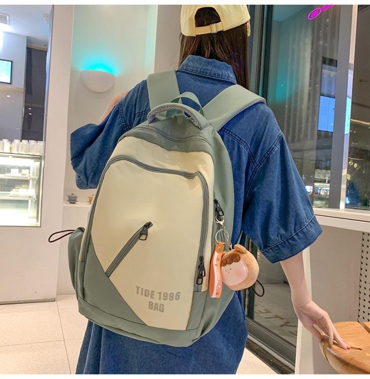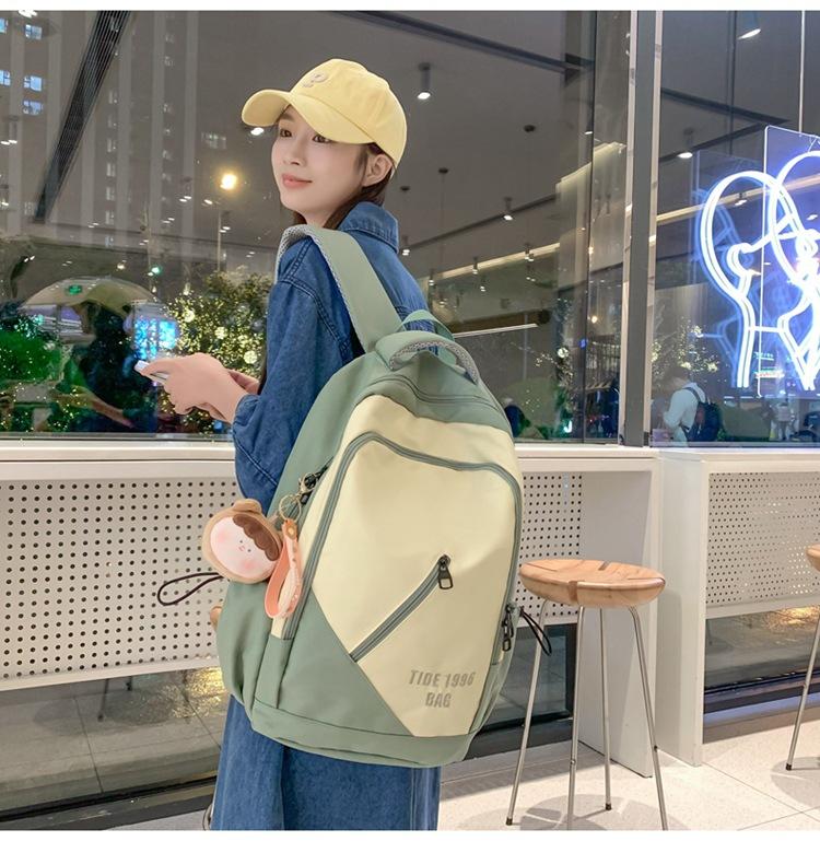 Mochila escolar para mujer, mochila de tela de nailon de gran capacidad, sencilla y combinable para estudiantes de secundaria y preparatoria.