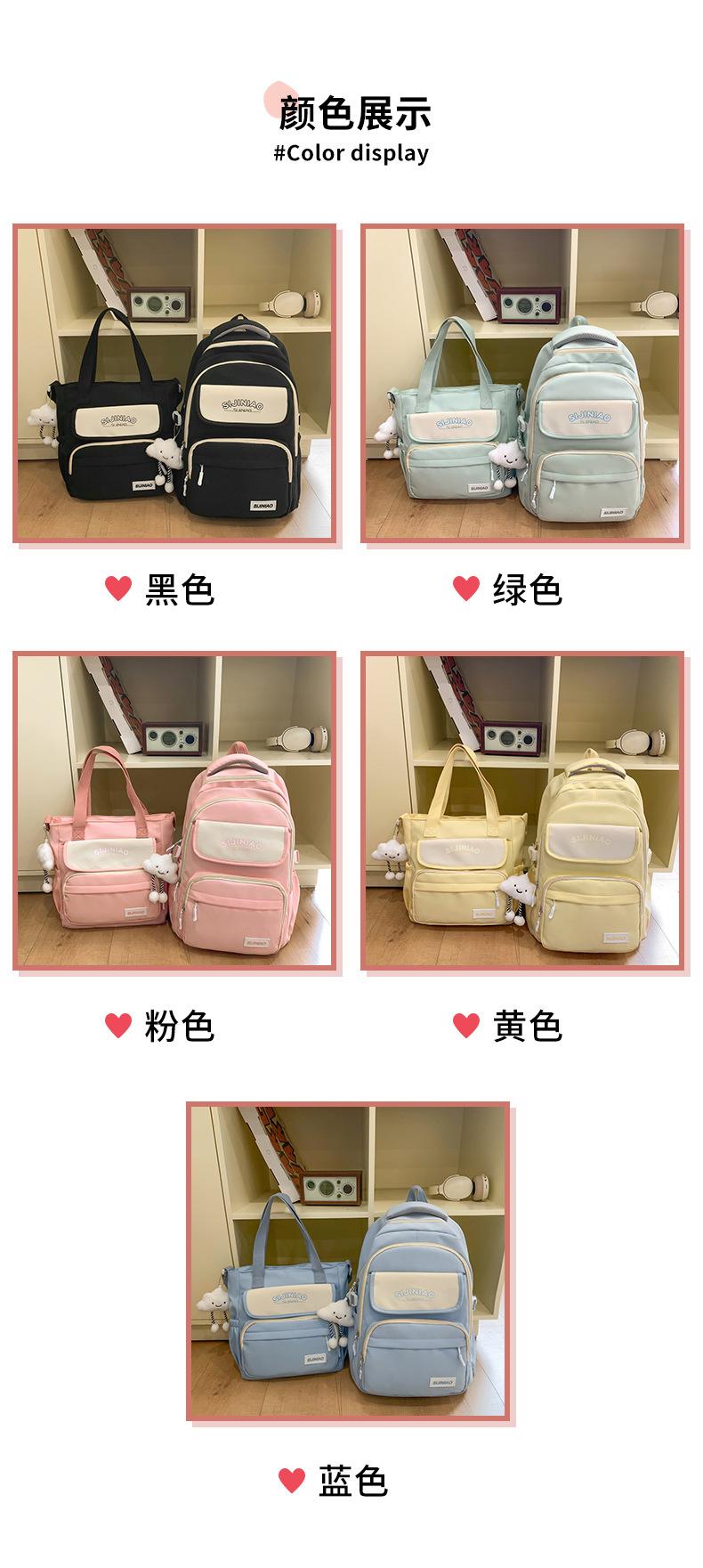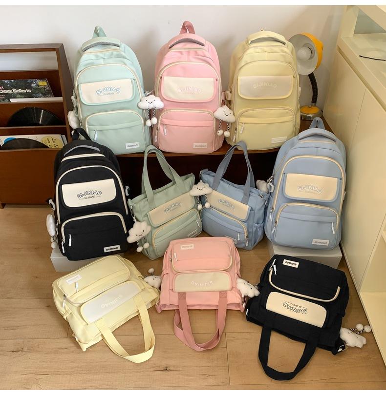 Black backpack, Green backpack, Pink backpack, Yellow backpack, Blue backpack, Black shoulder bag, Green shoul...