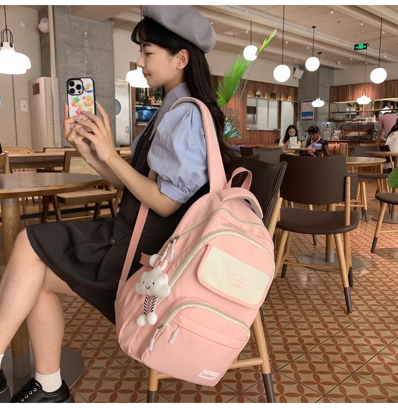 Mochila Simple Ligera Estilo Japonés Mochila Casual de Viaje para Mujer Gran Capacidad Mochila Escolar para Estudiante