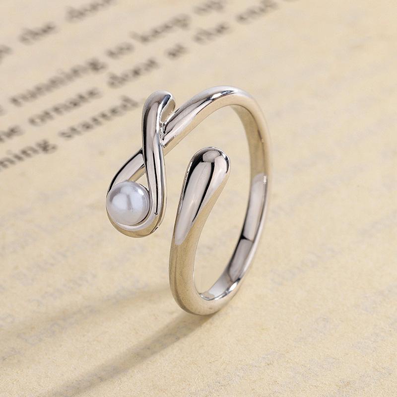 Anillo de Perlas Estilo Ins Europeo y Americano, Anillo de Moda Niche Geométrico de Alta Gama Normcore Elegante Suministro de Comercio Electrónico