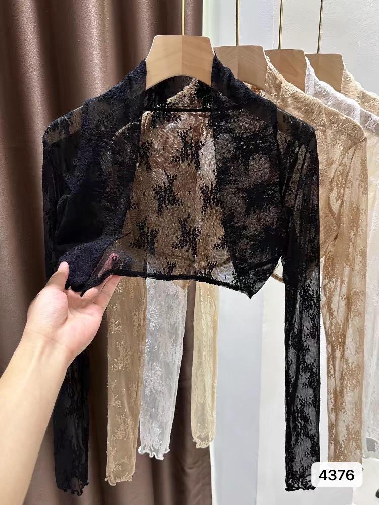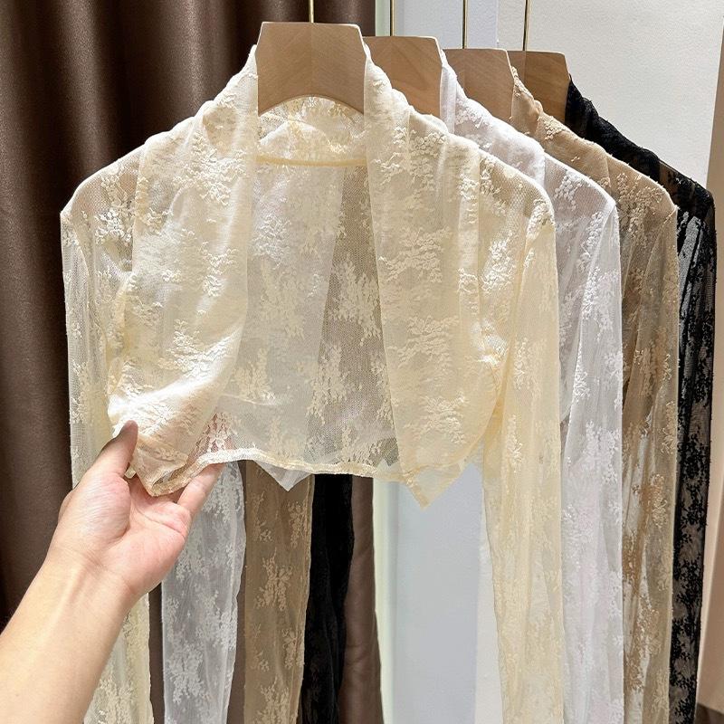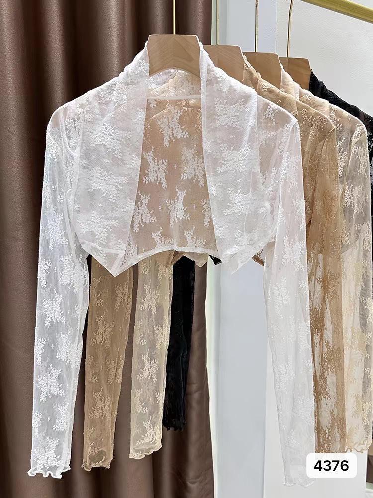 Chaleco pequeño estilo francés encaje para mujer verano manga larga transpirable cárdigan ligero moda corto abrigo protector solar