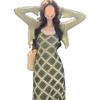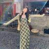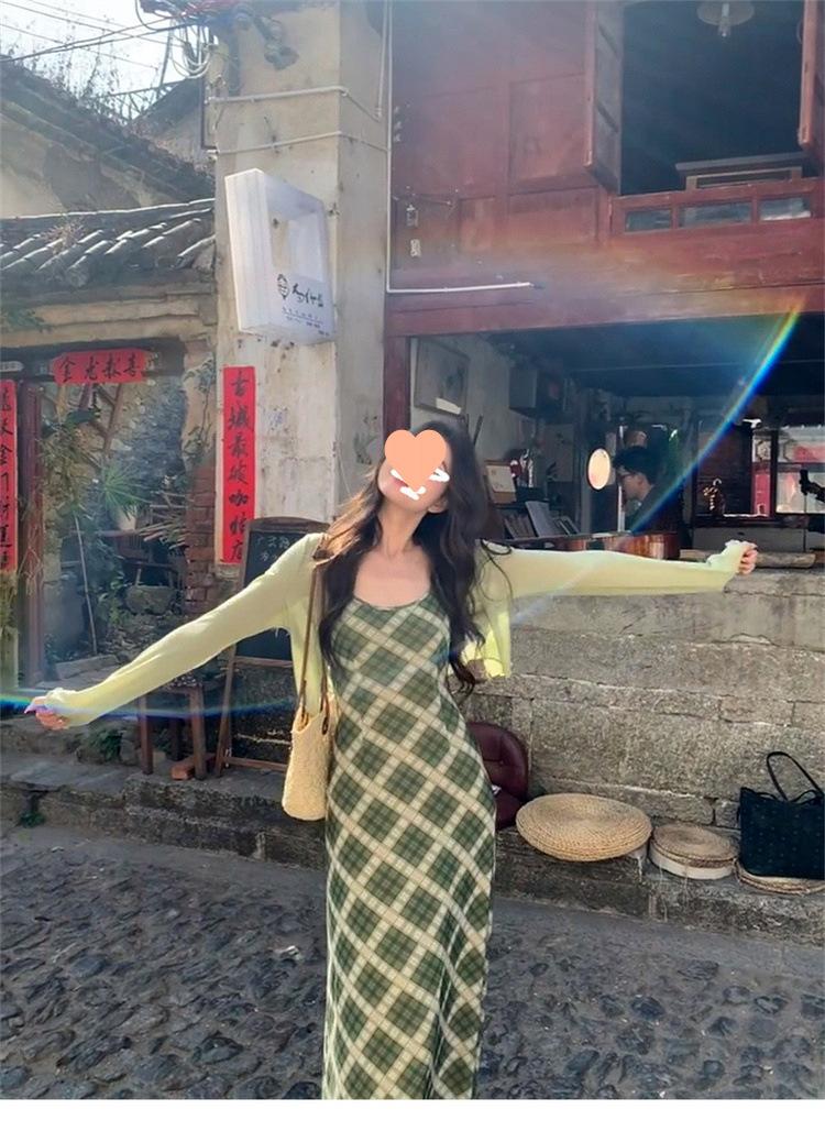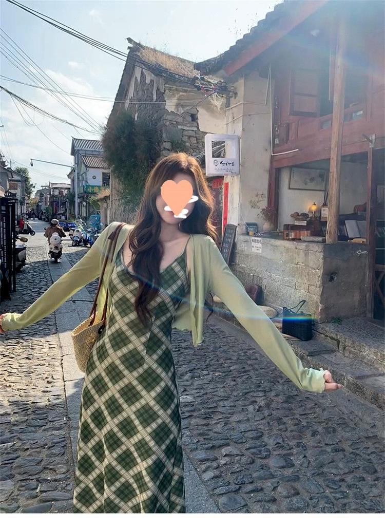 Vestido de Tirantes Estampado Retro Francés Estilo Chino Nuevo Primavera 2025 Cárdigan de Moda Adelgazante Set Falda Larga