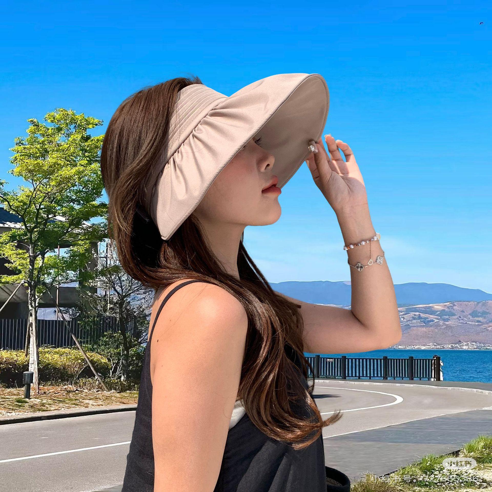 Sombrero de Sol de Ala Ancha Francés 2025 Nuevo Sombrero Topless de Lunares Sombrero de Sol Anti-UV de Playa para Viaje de Mujer