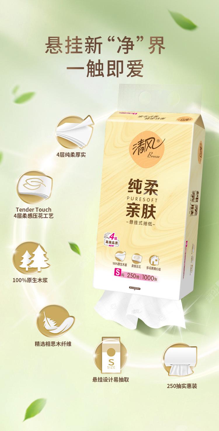 Caja de pañuelos colgante de 4 capas tamaño S con 250 hojas, adecuada para servilletas y papel higiénico