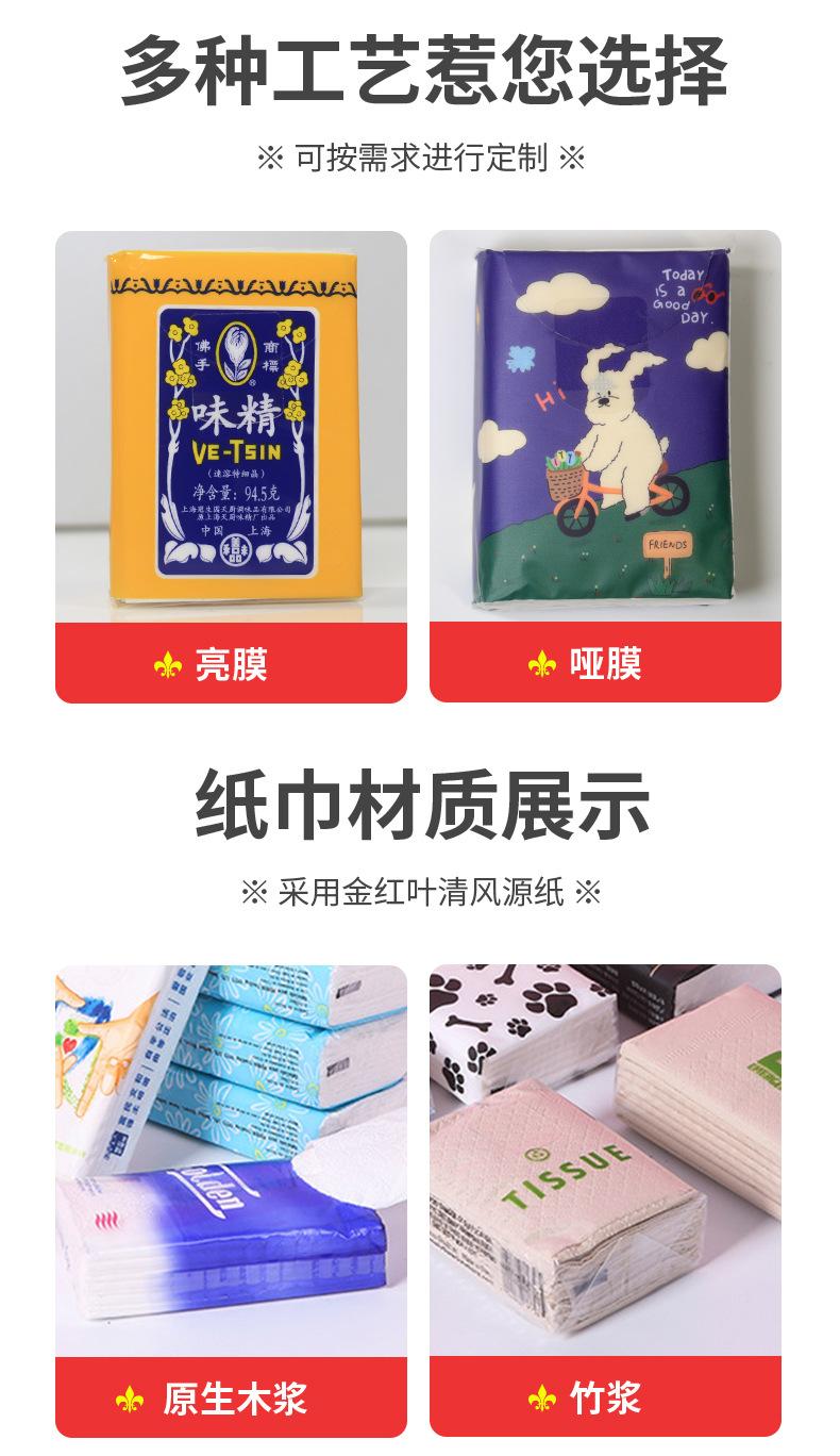Pañuelo de papel publicitario personalizado restaurante portátil personalizado hotel bolsa pequeña toalla de papel logo pañuelo de papel toalla de papel mayoreo