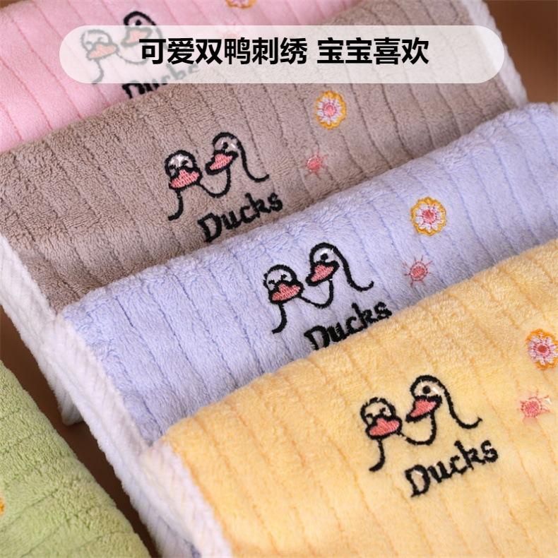 Toalla infantil de doble pato de vellón coral suave absorbente de secado rápido toalla facial para bebés y niños pequeños toalla pequeña bordada de dibujos animados al por mayor