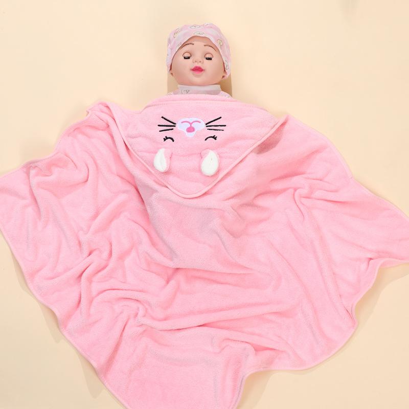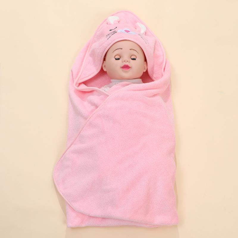 Toalla de baño suave absorbente de secado rápido de forro polar coral para bebés y niños, cálida con capucha, manta anti-patadas al por mayor