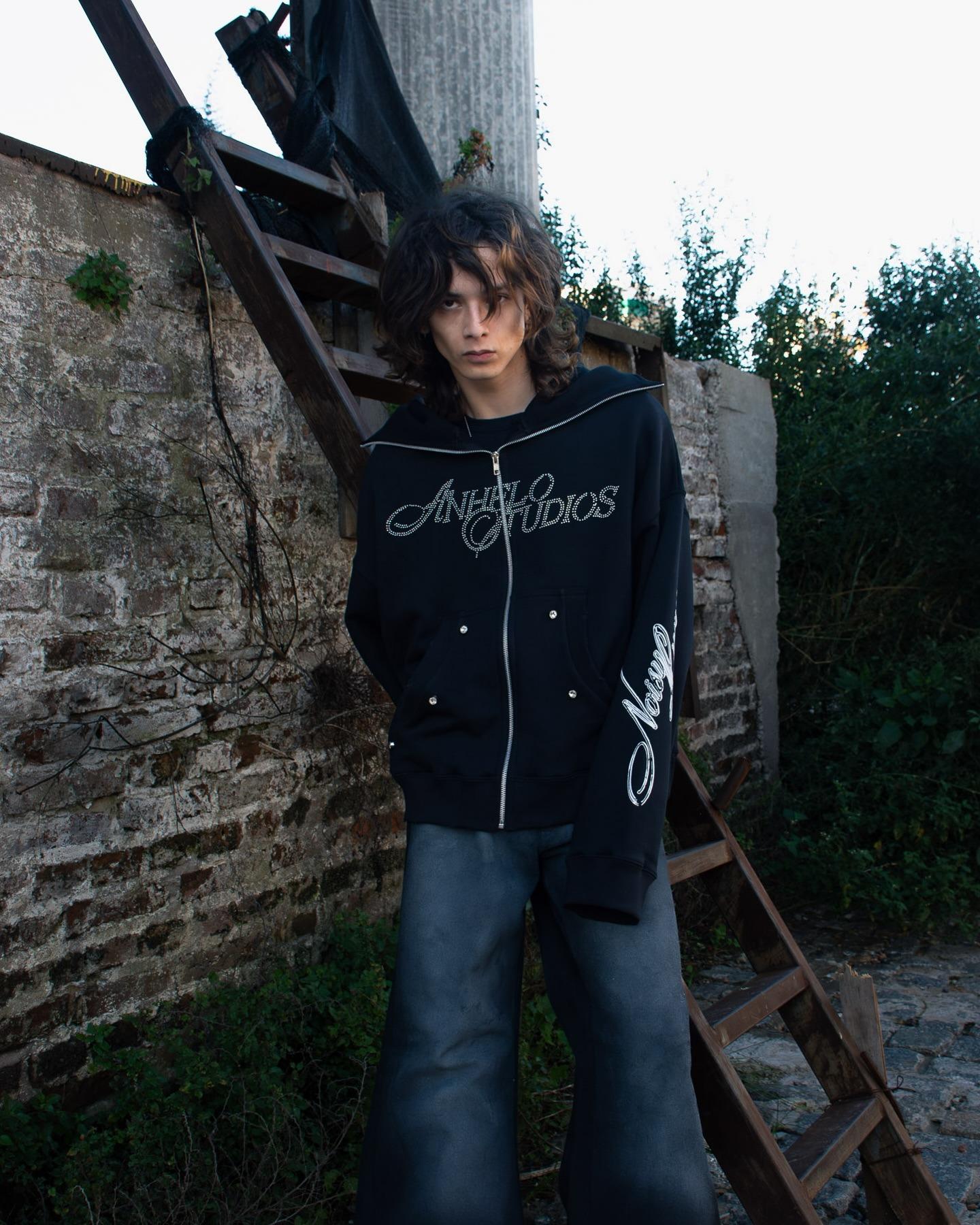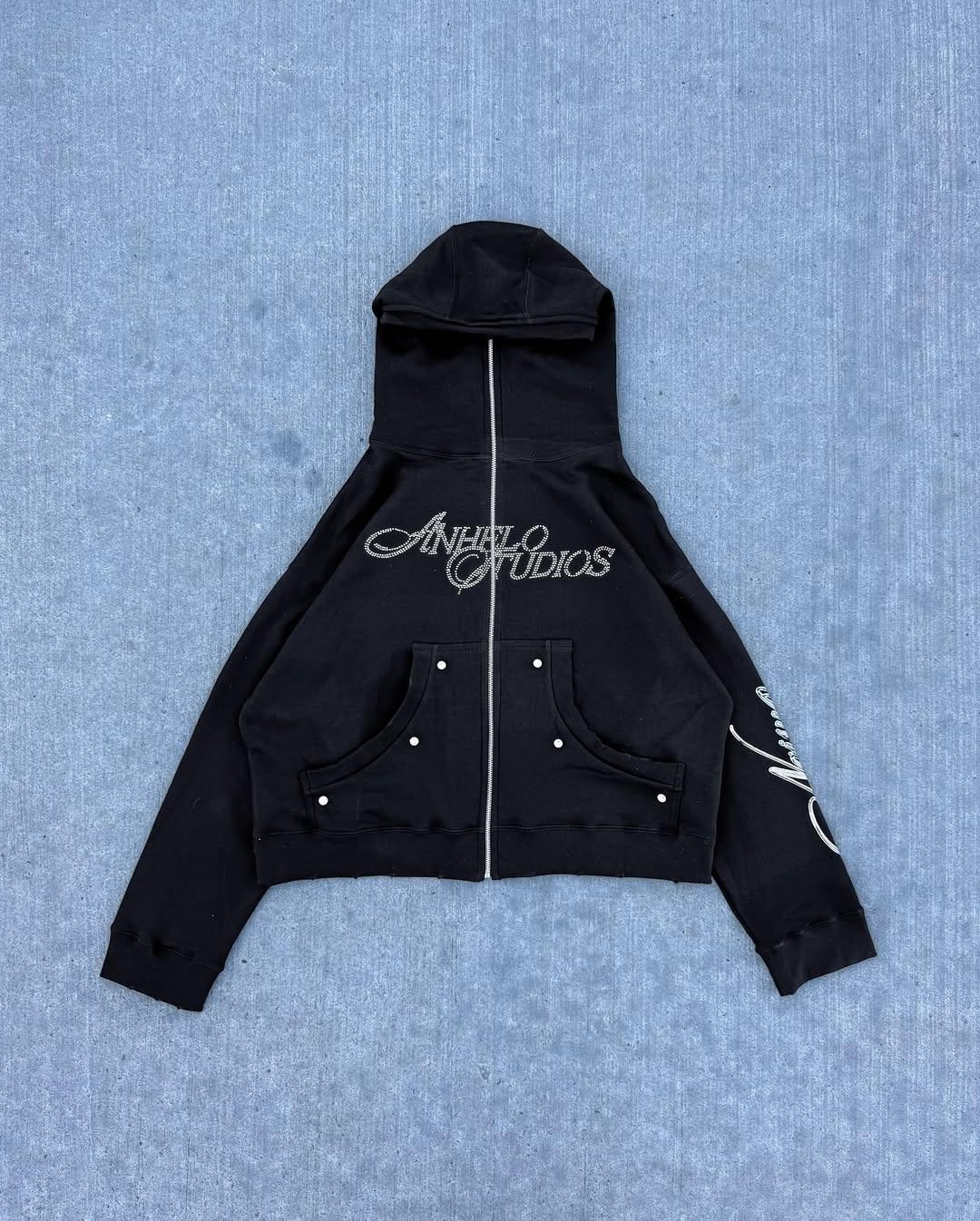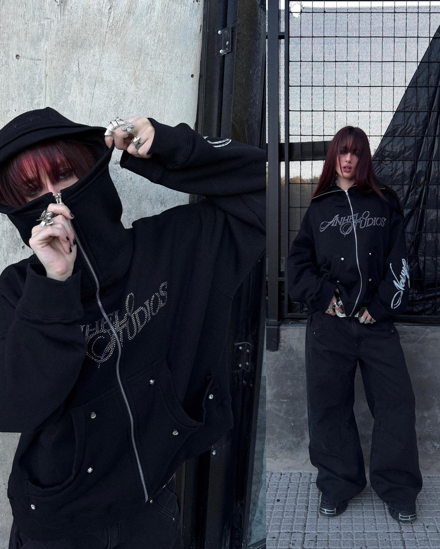 Sudadera con capucha con cremallera y pedrería de tendencia callejera europea y americana 2025, artículo de moda de otoño/invierno, top, ropa transfronteriza