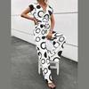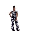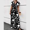 2025 Nuevo Europeo y Americano Transfronterizo Moda Amazon Elegante Casual Cuello en V Cintura Alta Estampado Pierna Ancha Pantalones con Cinturón