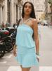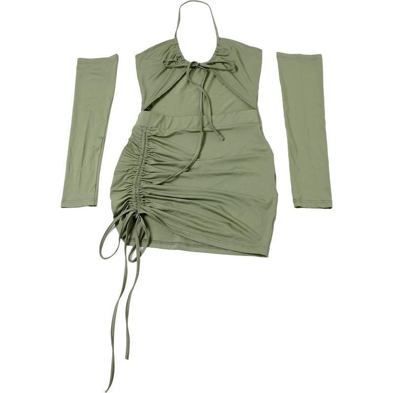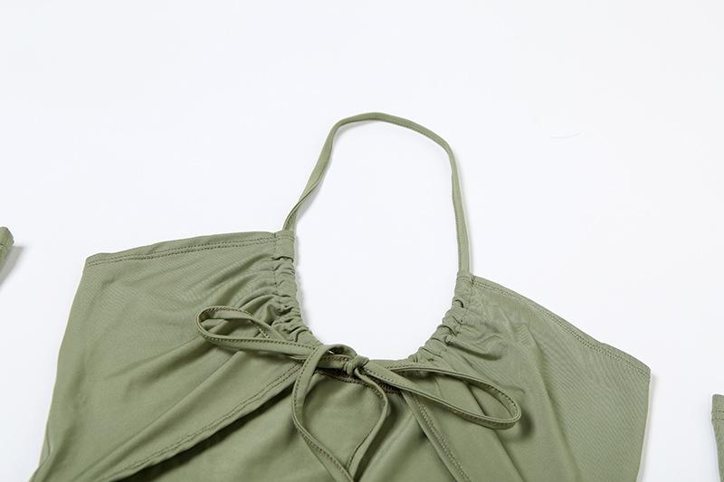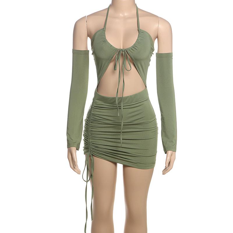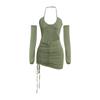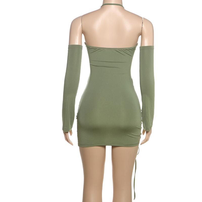 Estilo europeo y americano 2025 verano nuevo ropa de mujer sexy color sólido manga corta halter lazo cordón ajuste ceñido vestido ajustado a las caderas