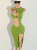 2025 Moda Transfronteiriça Europeia e Americana Vestido Bodycon de Gola Redonda Design de Nicho Crossover Fenda Frontal Vestido Sexy de Menina Quente