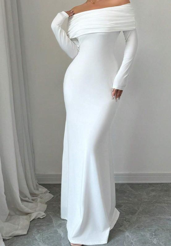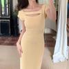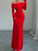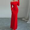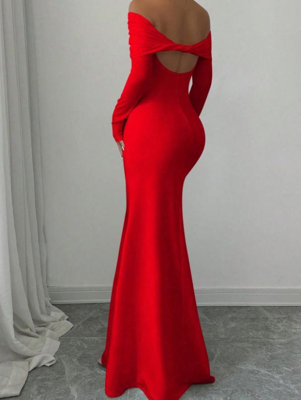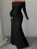 Vestido de Noche Sexy de Color Sólido de Moda Adelgazante con Hombro Descubierto, Cintura Alta y Espalda Descubierta para Otoño e Invierno Transfronterizo para Europa y América