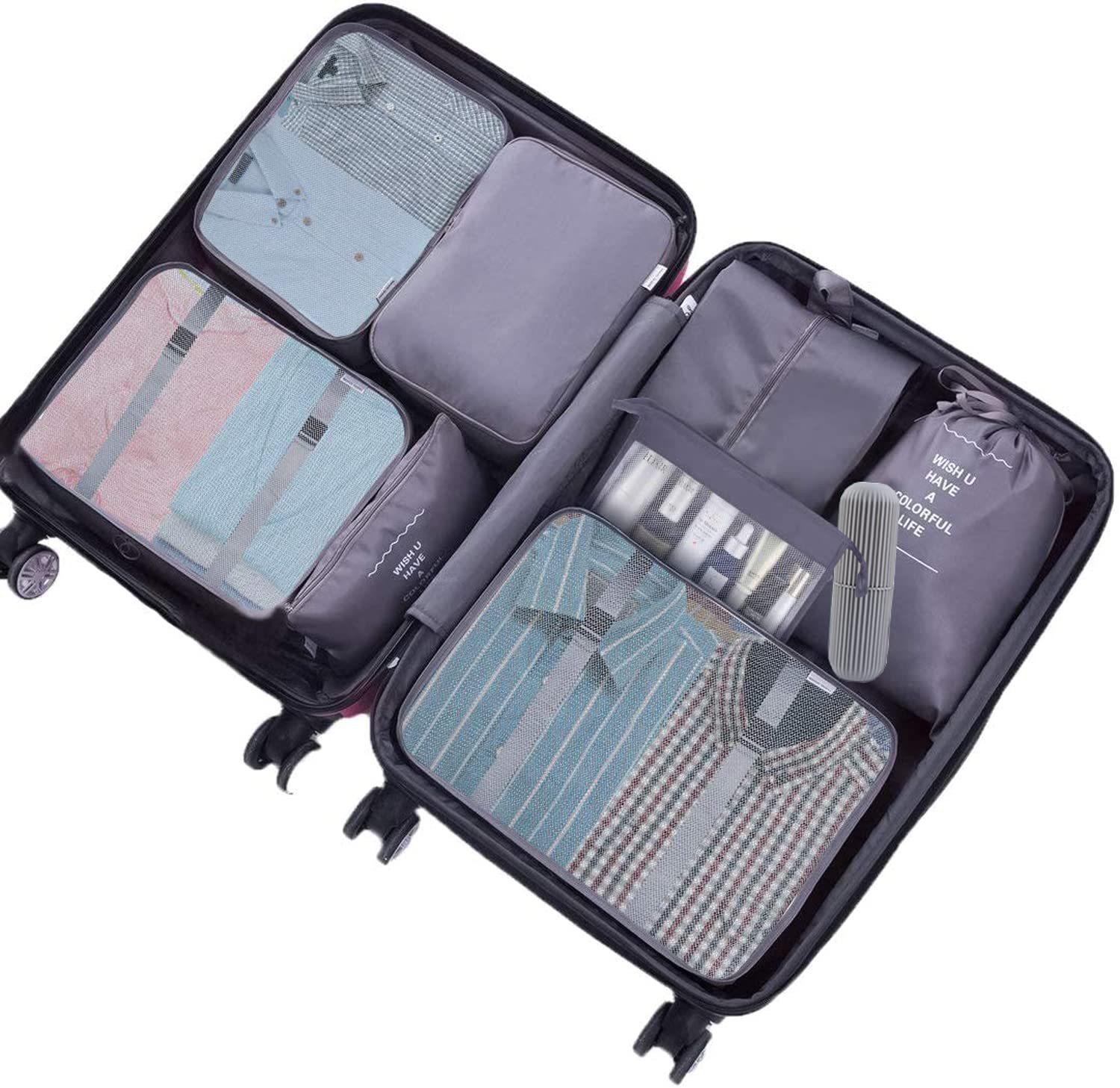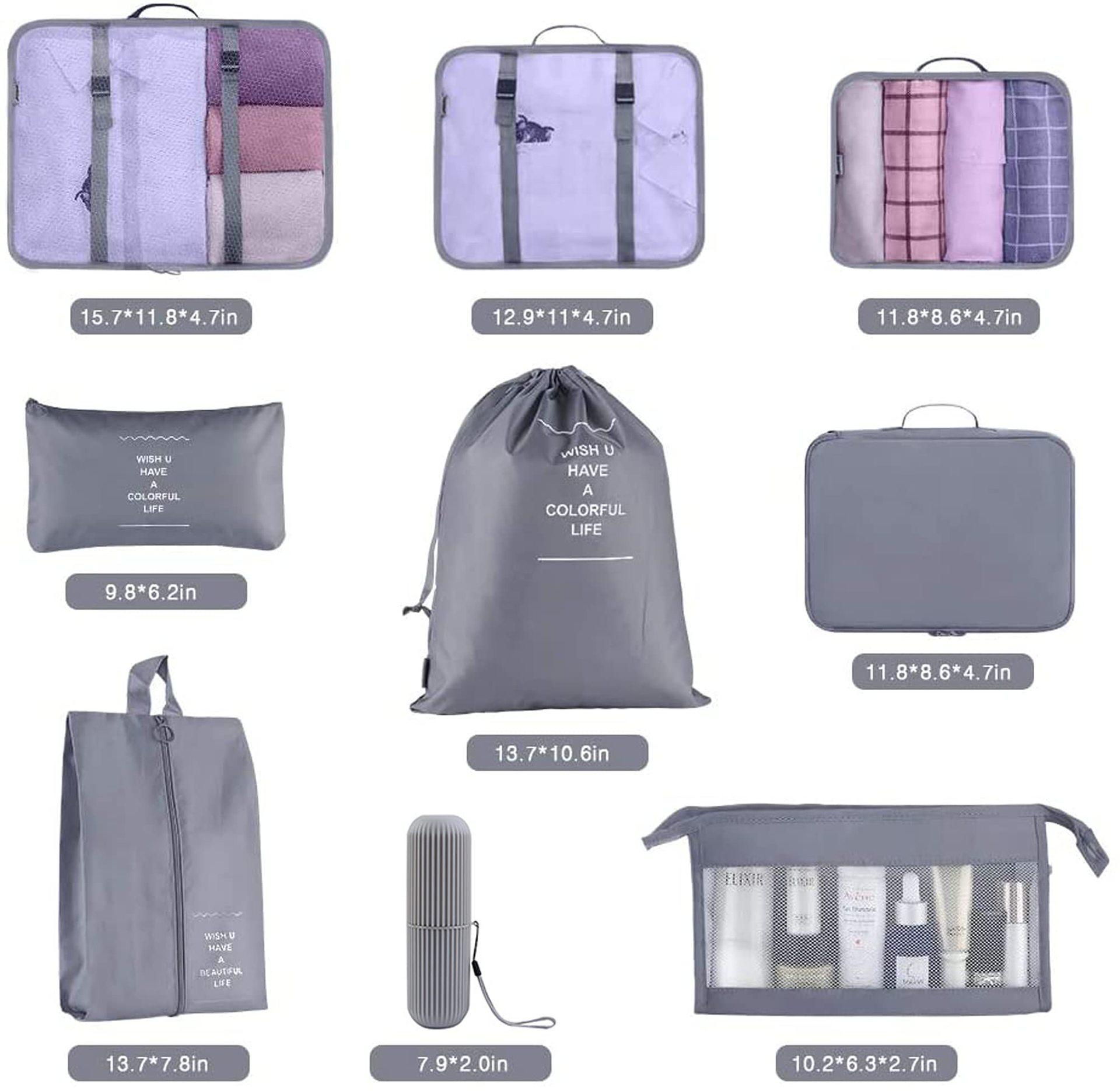 Nuevo juego de bolsas de viaje transfronterizas de nueve piezas con vaso para lavado, bolsa plegable para guardar ropa y sujetadores.