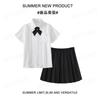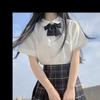 Smoke gray plaid skirt + bow tie, White shirt short sleeves + smoke gray bow tie, Haohai white shirt short sle...