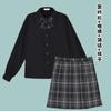 Haohai white shirt long sleeves + smoky gray plaid skirt + bow tie