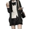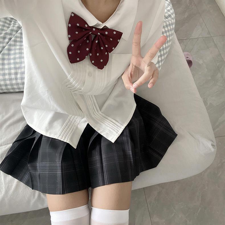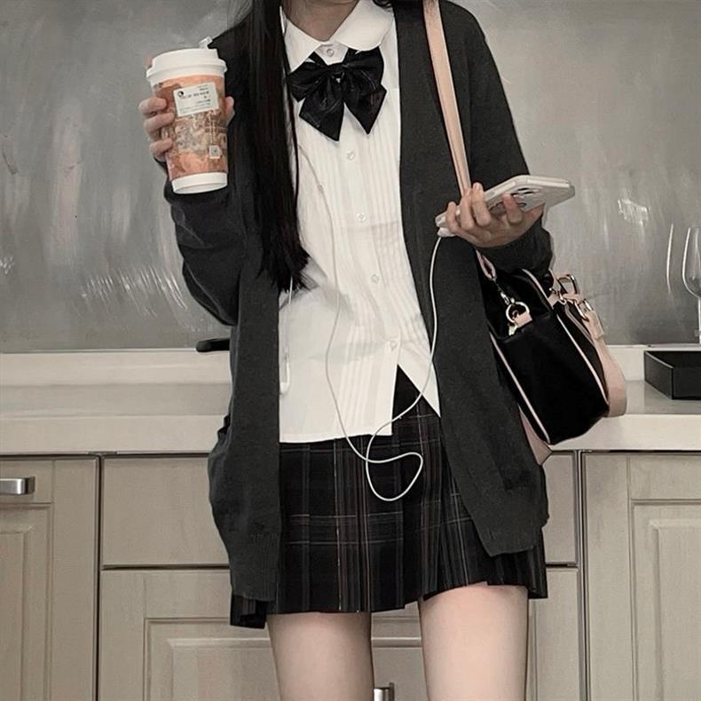 Traje de uniforme jk gris carbón para mujer de verano falda a cuadros genuina estilo escolar japonés estilo universitario conjunto completo falda plisada original