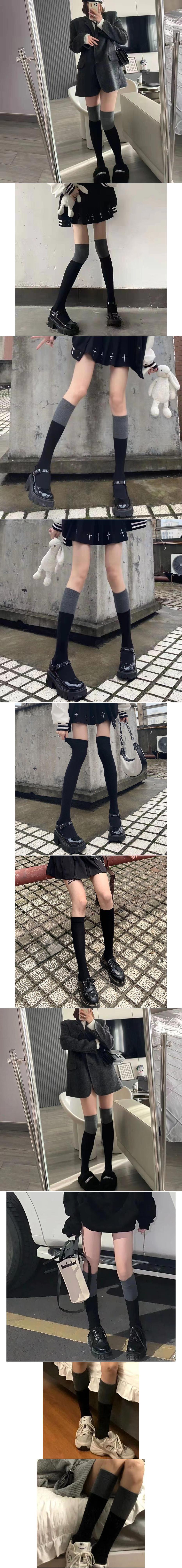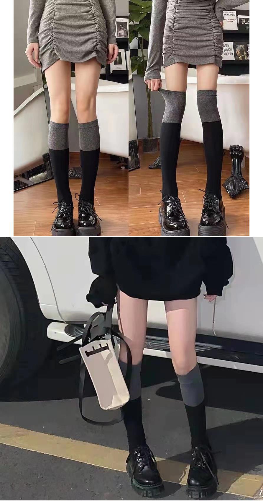 Color Block Over-the-Knee Socks, Color Block Calf Socks, Black knee-high socks, Pure black calf socks, Terry t...