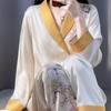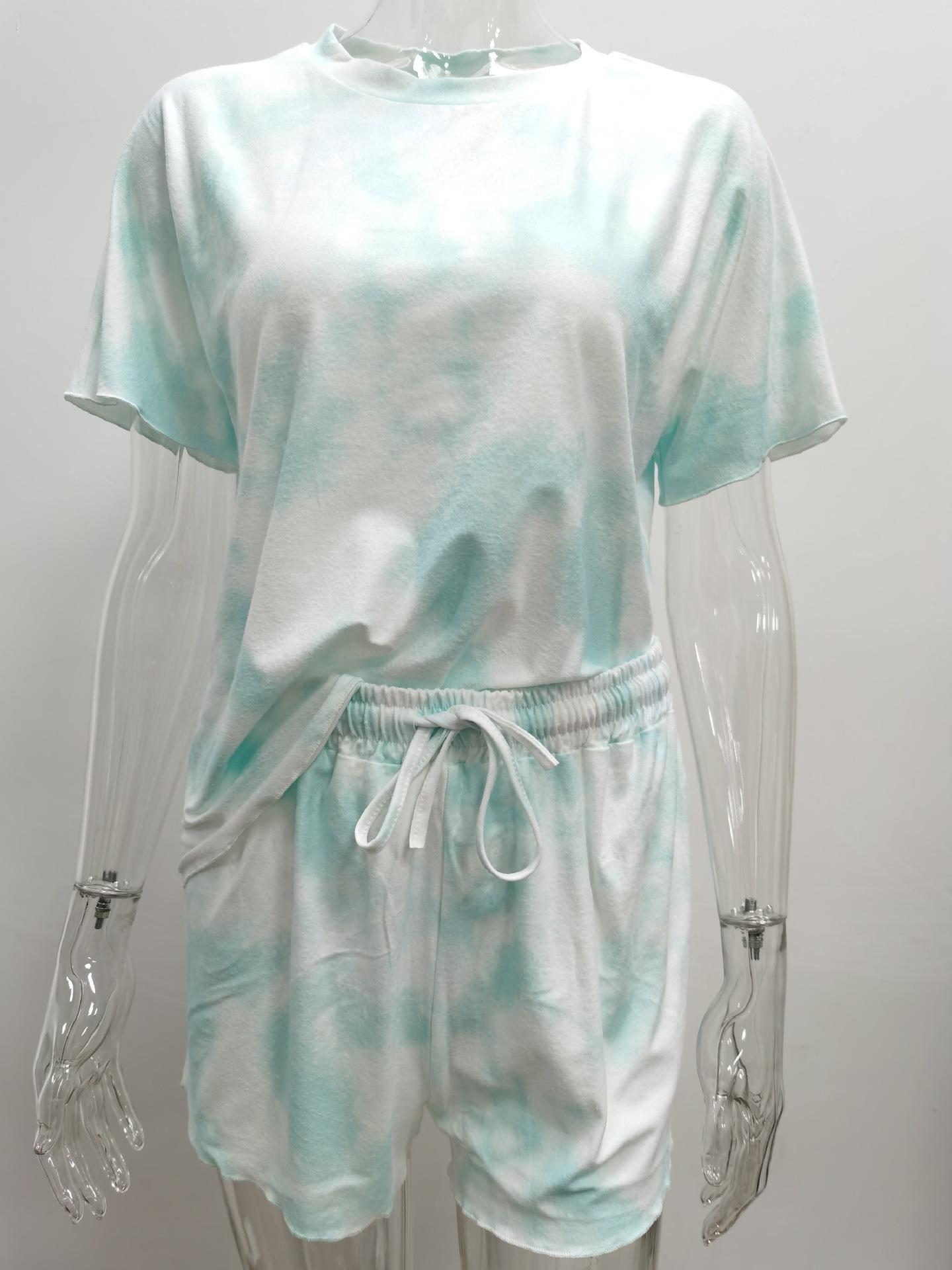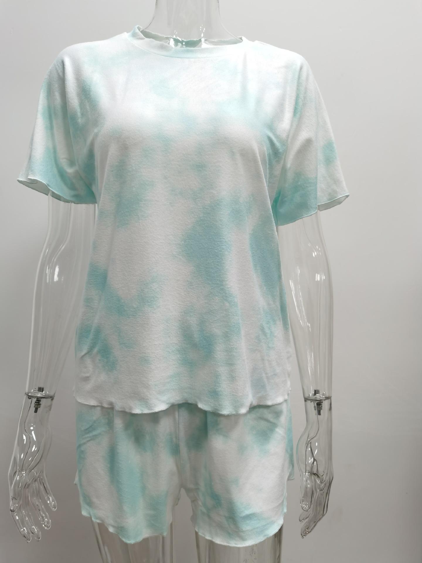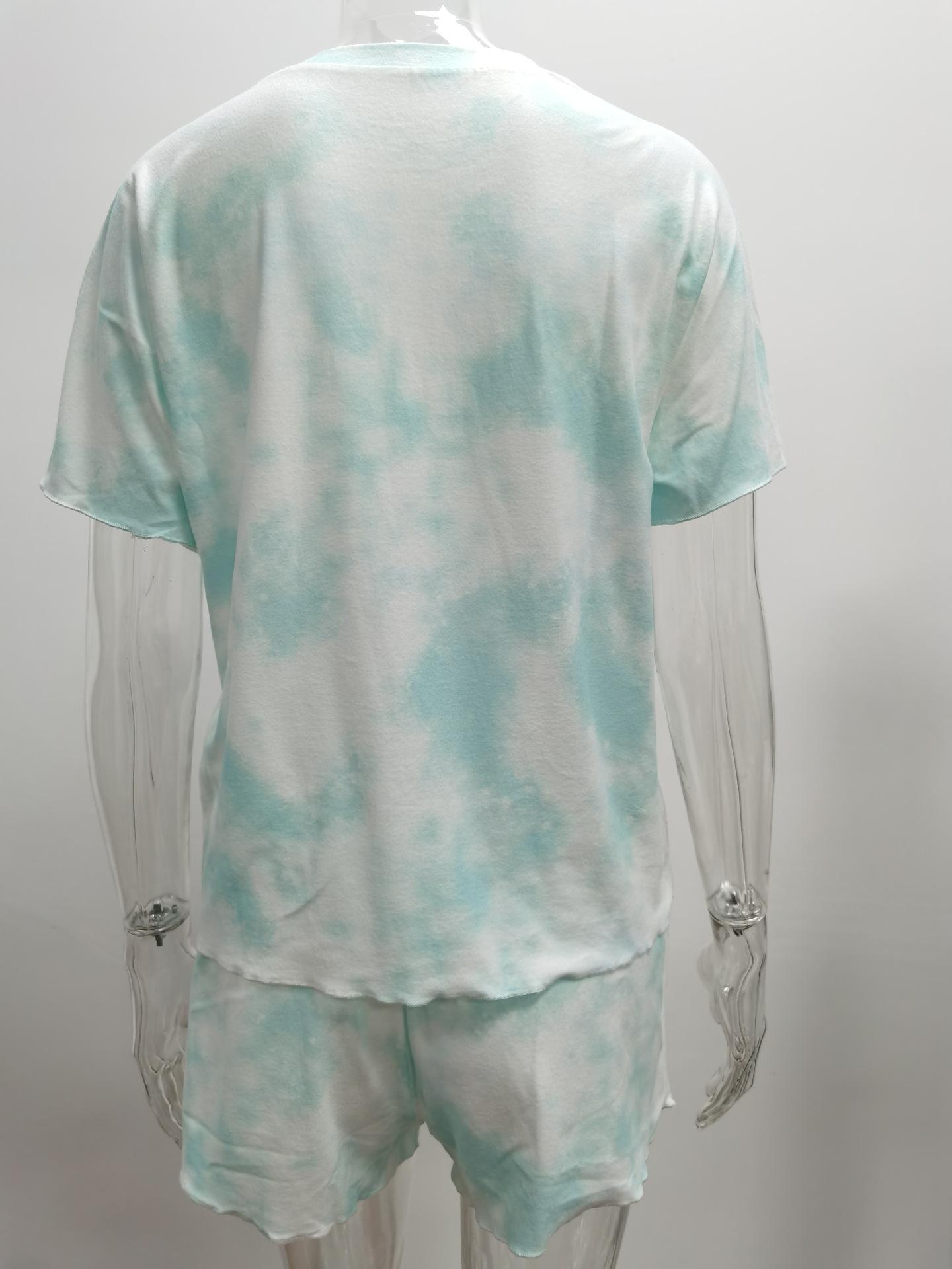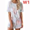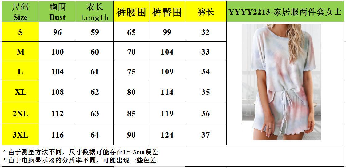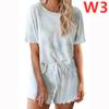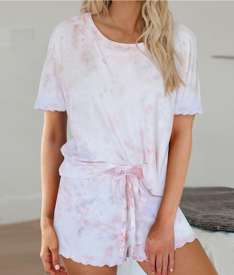 Comercio exterior Amazon Pijama de manga corta teñido anudado europeo y americano para mujer nuevo tejido de punto cuello redondo jersey traje de ropa de casa para mujer