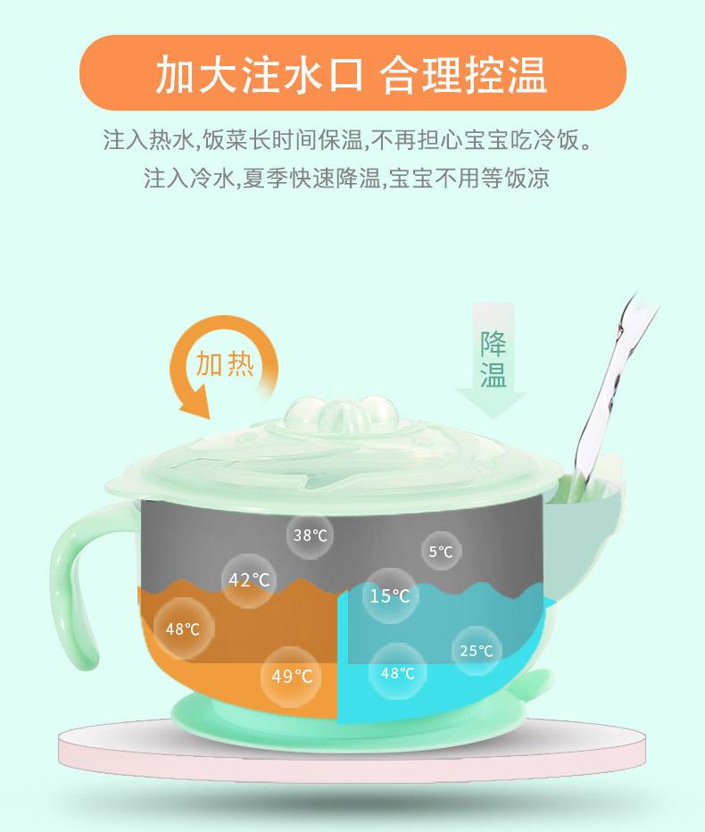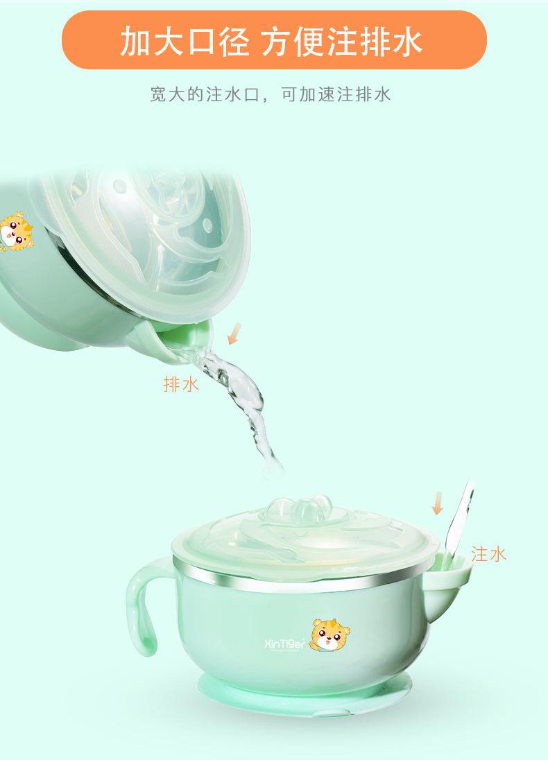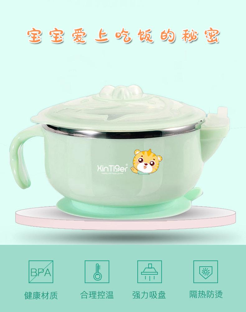 Tazón para comida de bebé de dibujos animados para bebés, tazón de succión aislado lleno de agua, tazón infantil de acero inoxidable, venta caliente transfronteriza