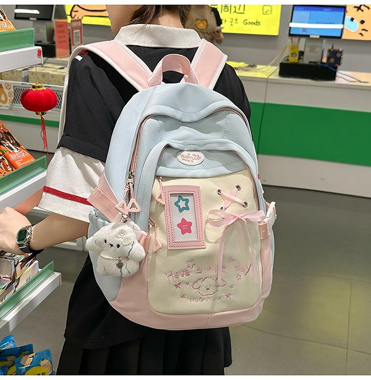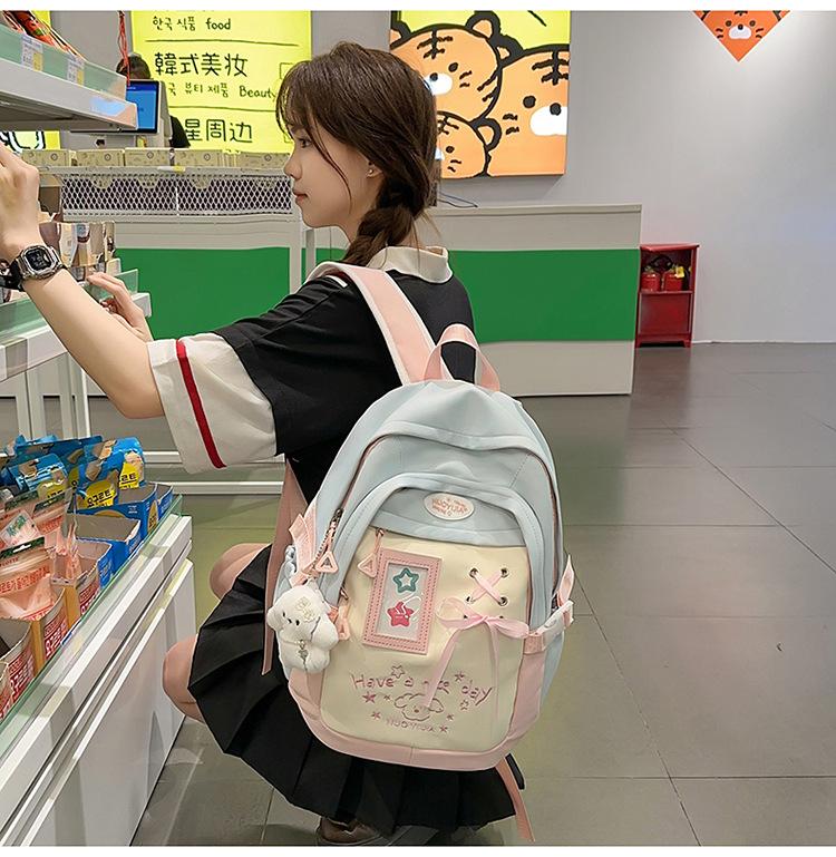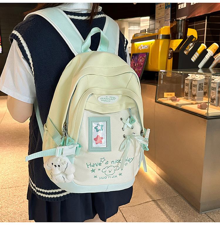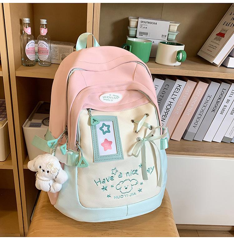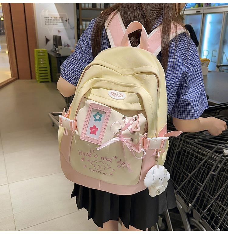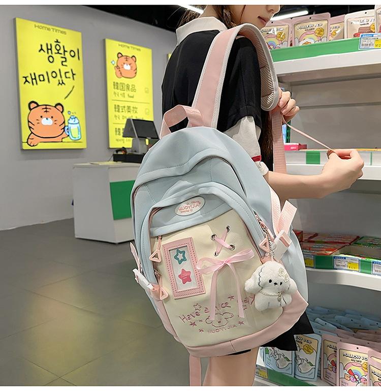 Mochila Escolar Estilo K para Estudiante Universitaria, Linda, Gran Capacidad, Mochila para Computadora, Moda de Combinación de Colores, Mochila para Estudiante de Secundaria