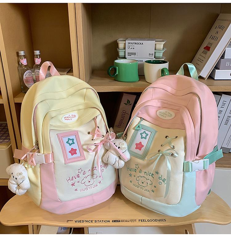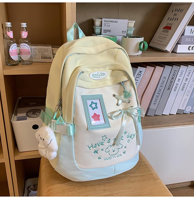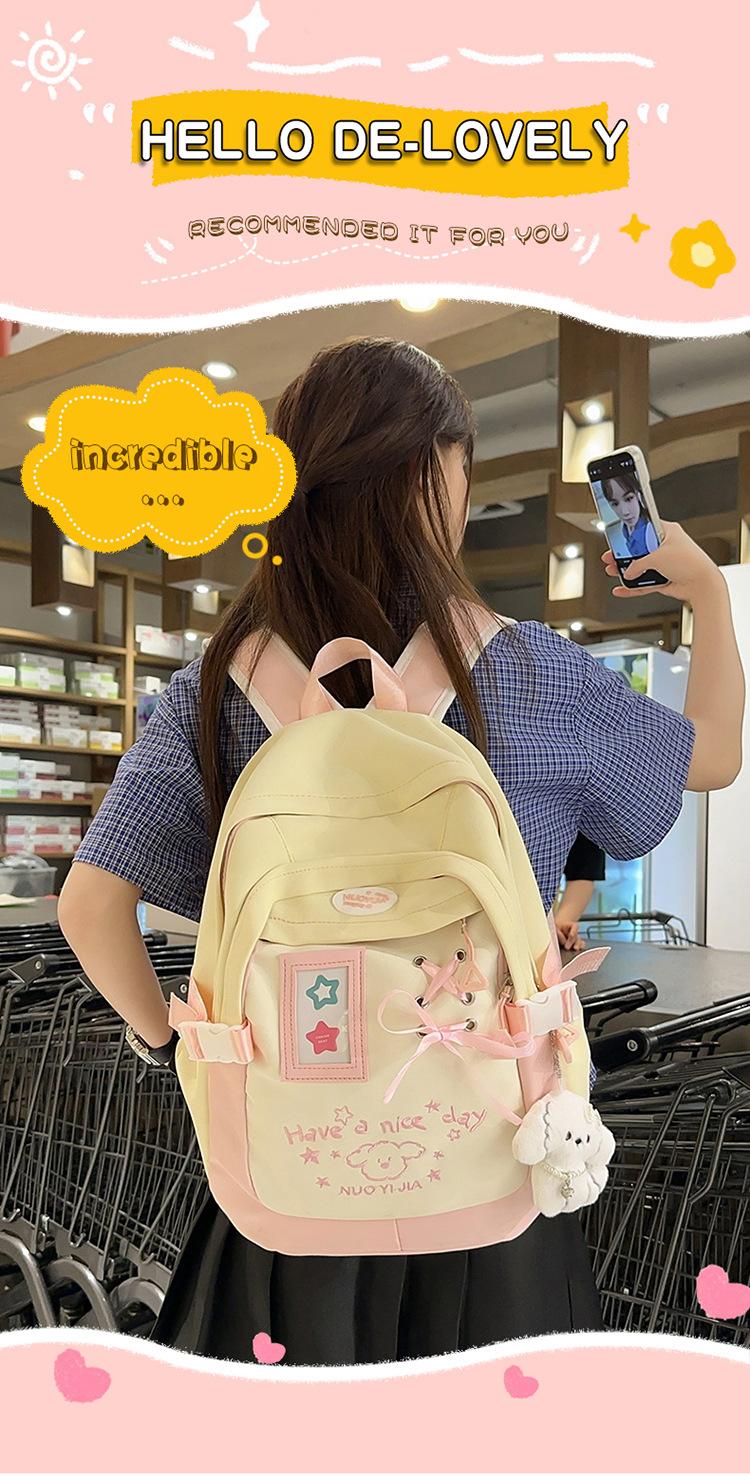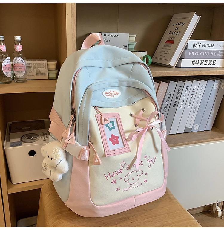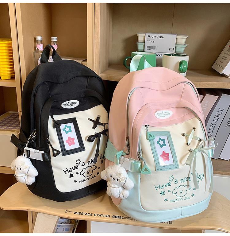Mochila Escolar Estilo K para Estudiante Universitaria, Linda, Gran Capacidad, Mochila para Computadora, Moda de Combinación de Colores, Mochila para Estudiante de Secundaria
