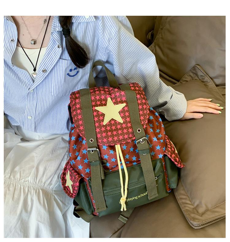 Mochila Escolar de Diseño Nicho para Estudiante Universitaria Japonesa con Empalme de Estrella para Viaje, Gran Capacidad, Mochila para Estudiante de Secundaria