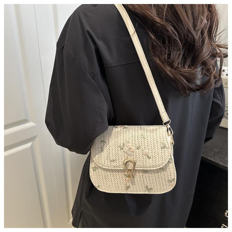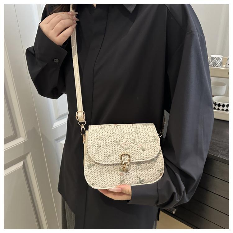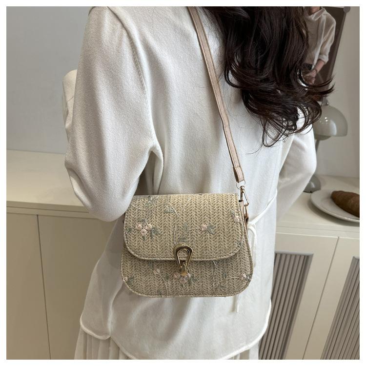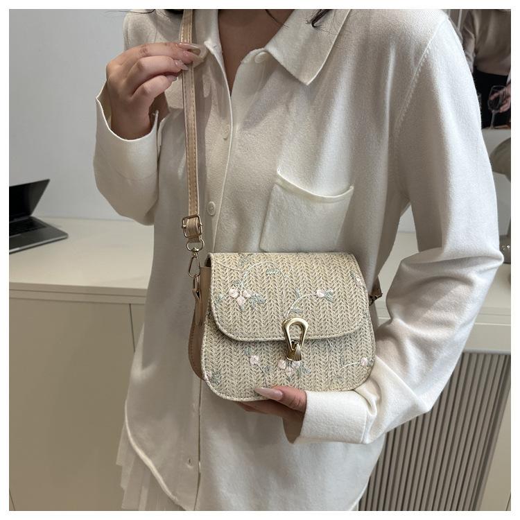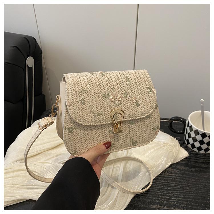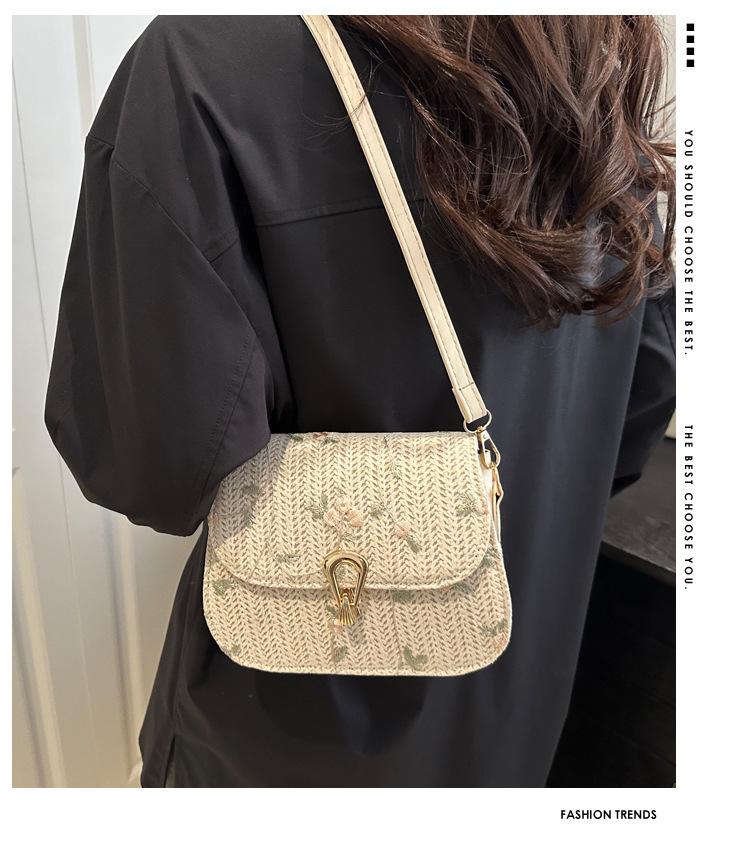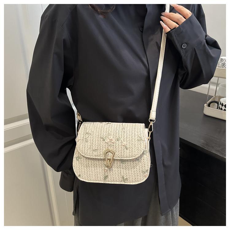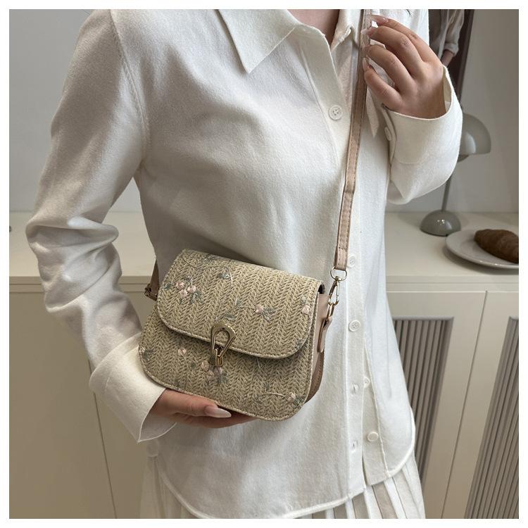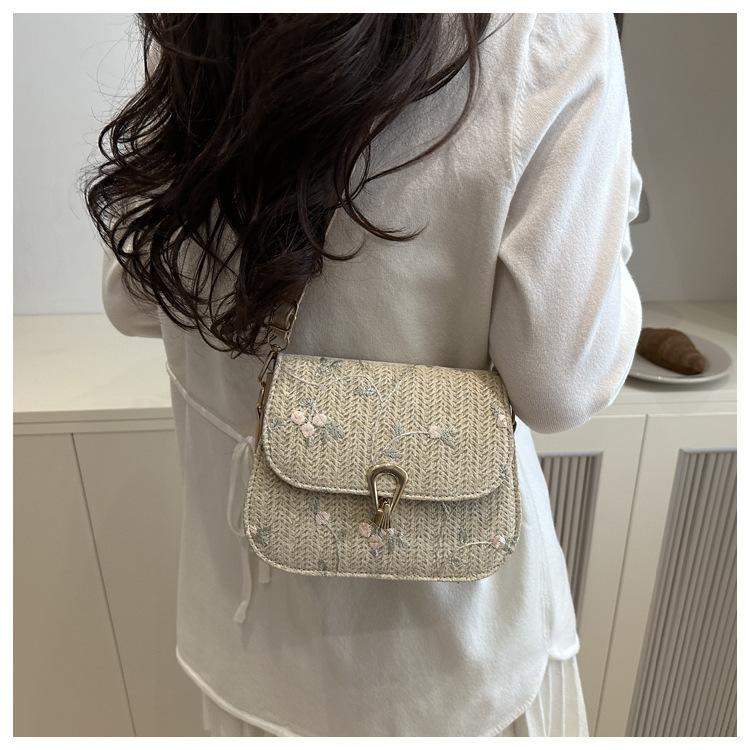 Bolso de Paja de Verano para Mujer 2025 Nuevo Estilo Pequeño Fresco Flor de Encaje Tejido Bolso de Silla de Montar Bolso de Hombro Bandolera de Moda