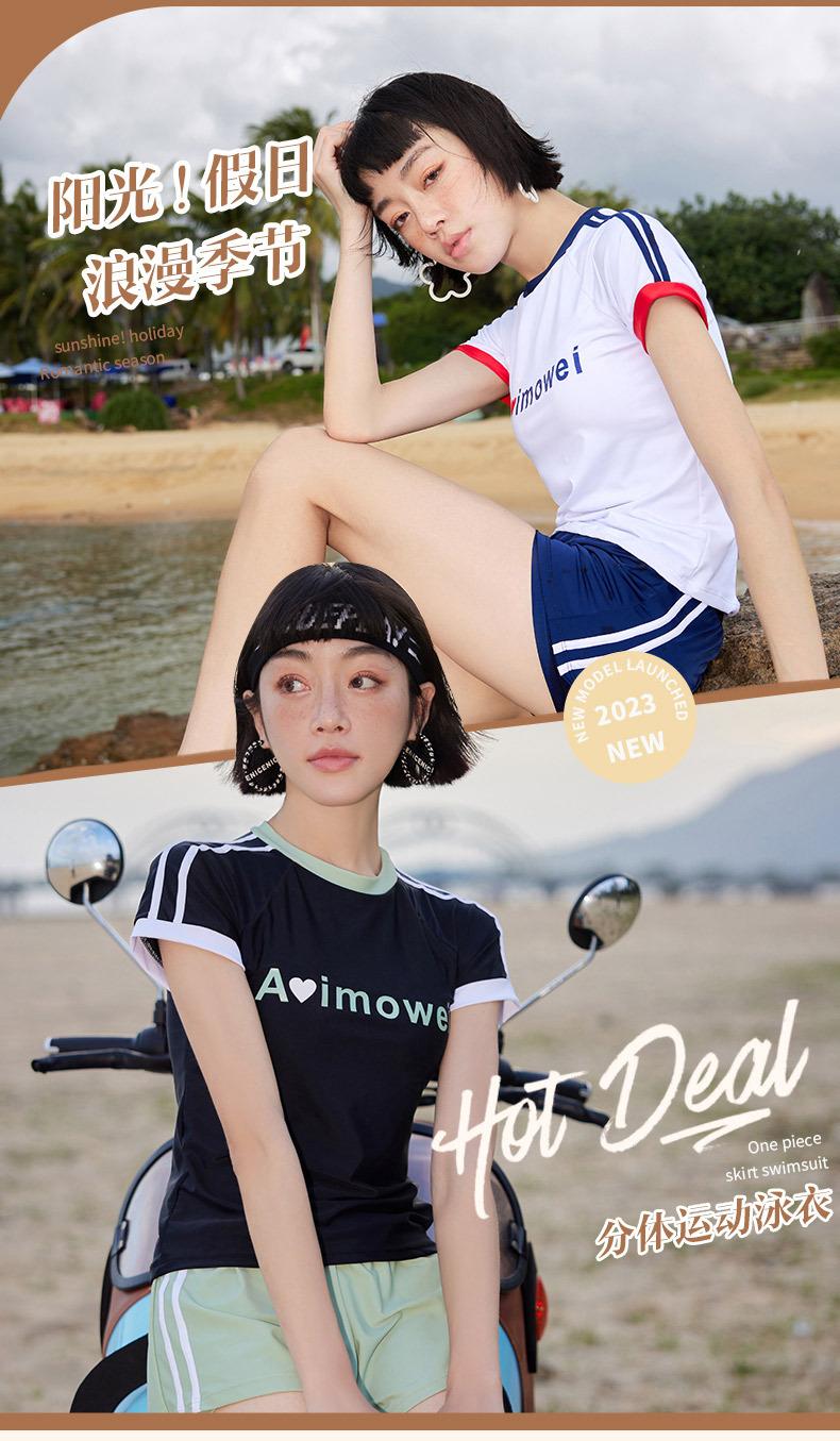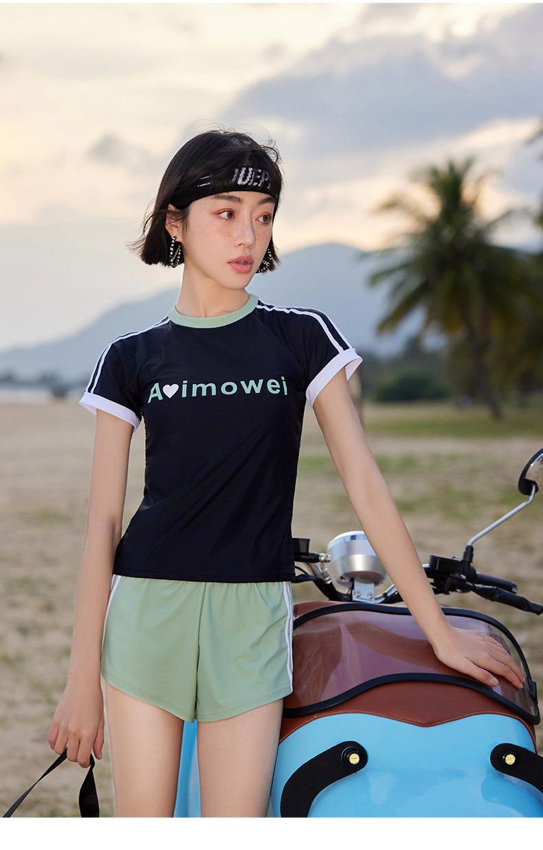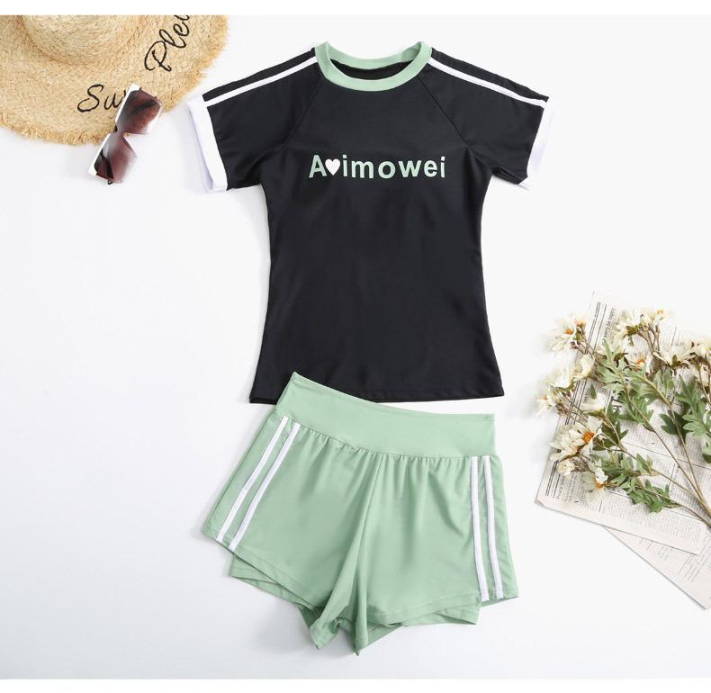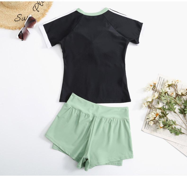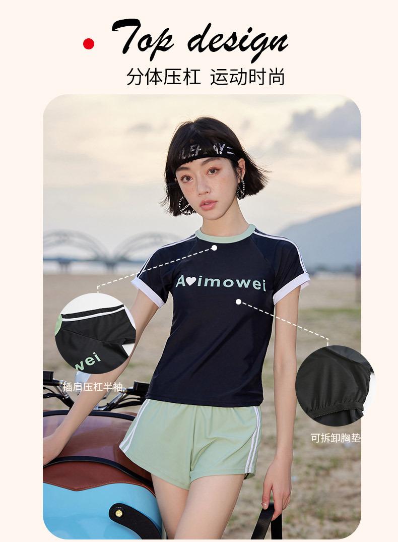 Traje de baño nuevo para mujer de talla grande, dividido, de media manga, pantalón bóxer, ligeramente gordo mm200 kg, deportivo, adelgazante de vientre, traje de baño de estudiante
