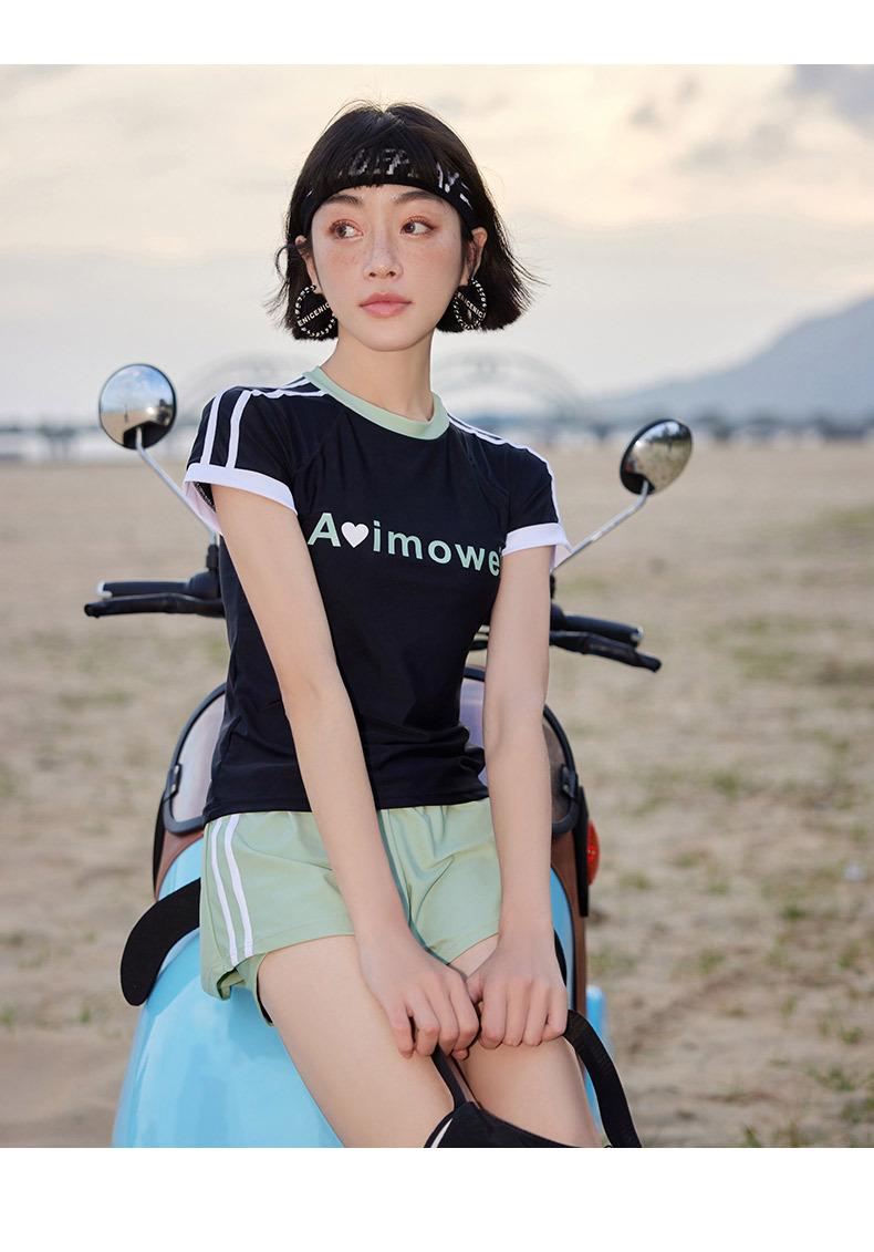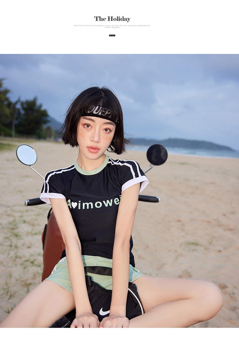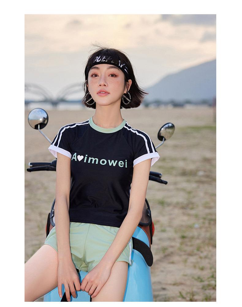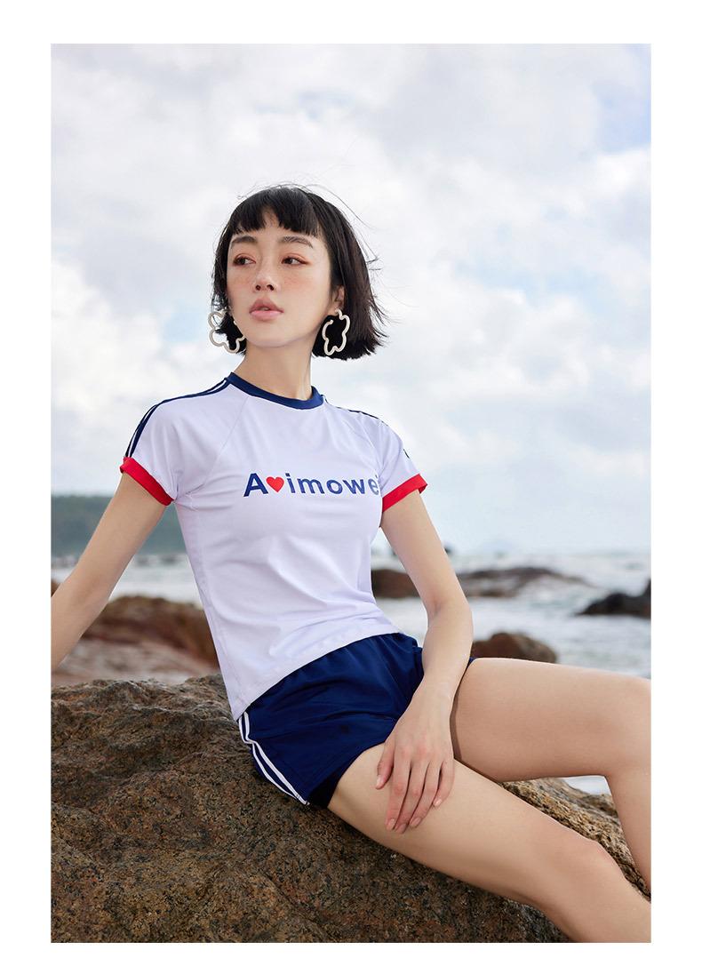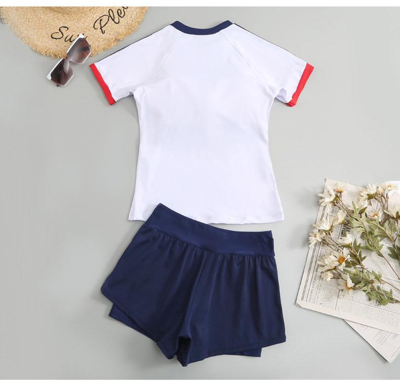 Traje de baño nuevo para mujer de talla grande, dividido, de media manga, pantalón bóxer, ligeramente gordo mm200 kg, deportivo, adelgazante de vientre, traje de baño de estudiante