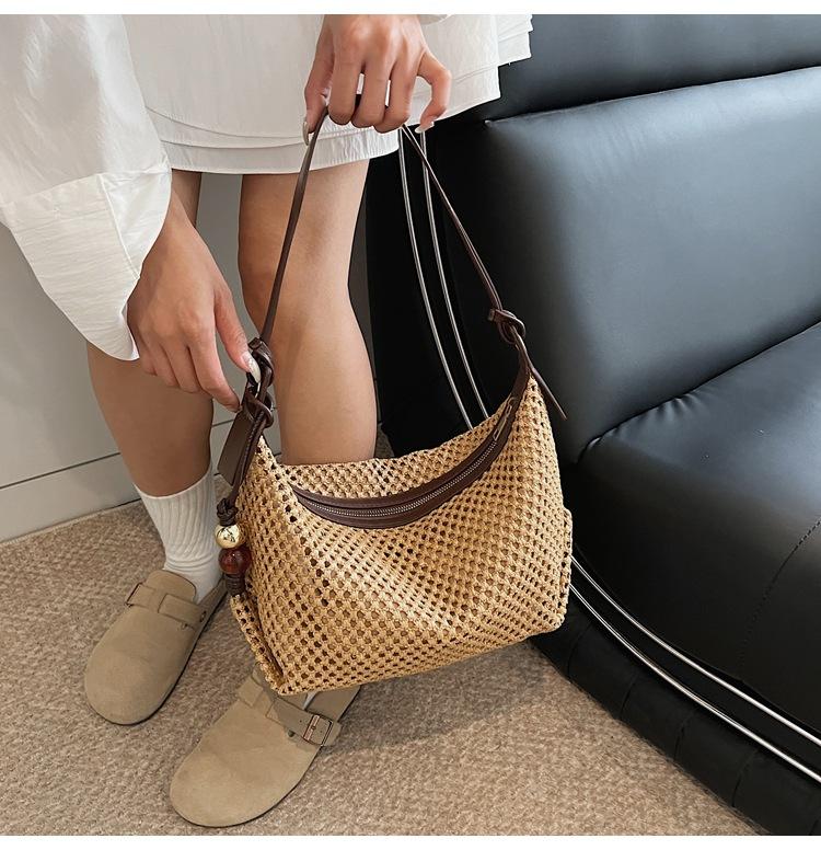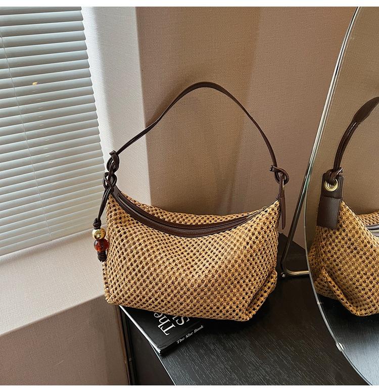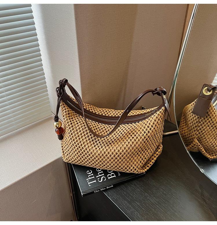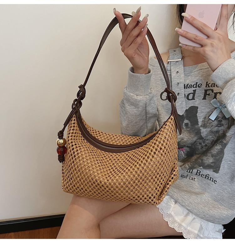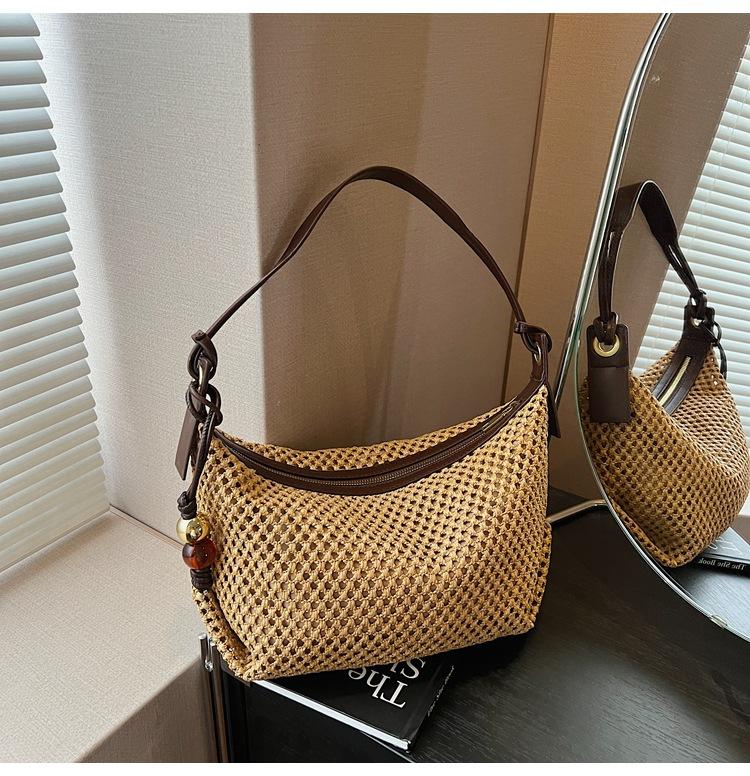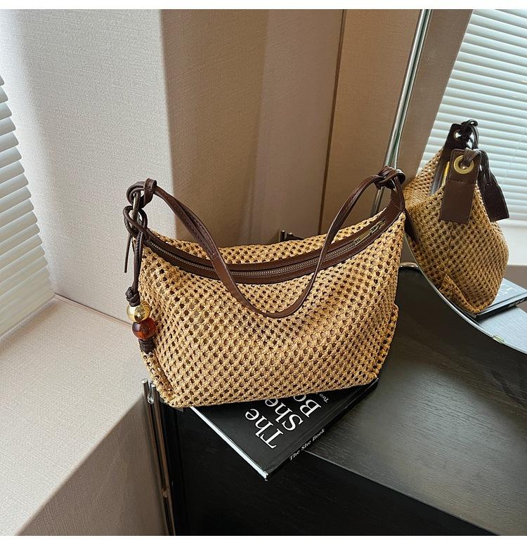 Bolso Tejido Transfronterizo para Mujer 2025 Nuevo Bolso de Moda Trendy Retro de Paja con Forma de Empanadilla Versátil de Gran Capacidad Bolso de Hombro