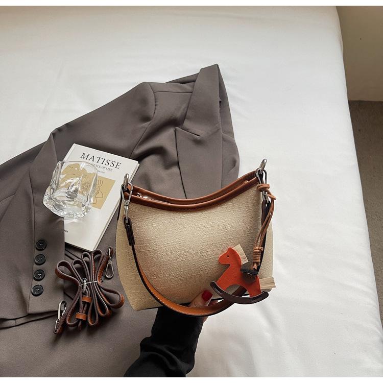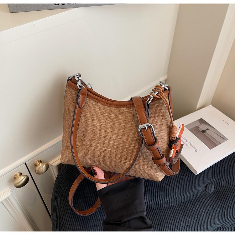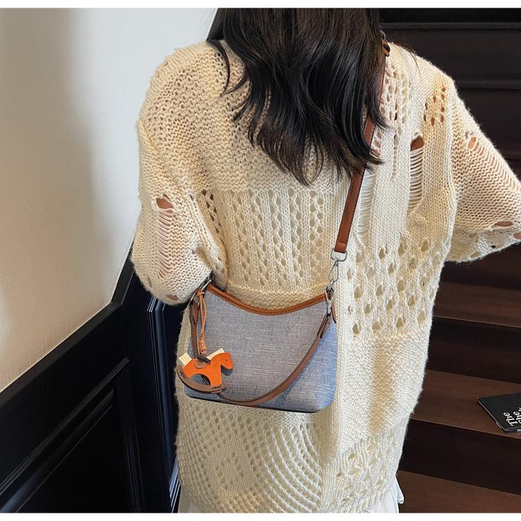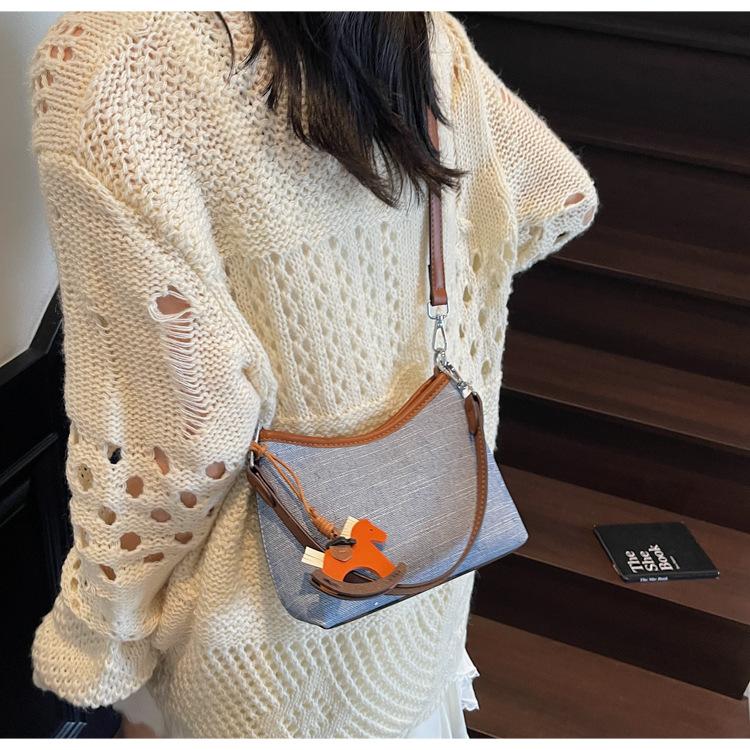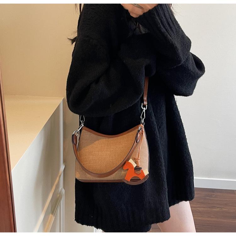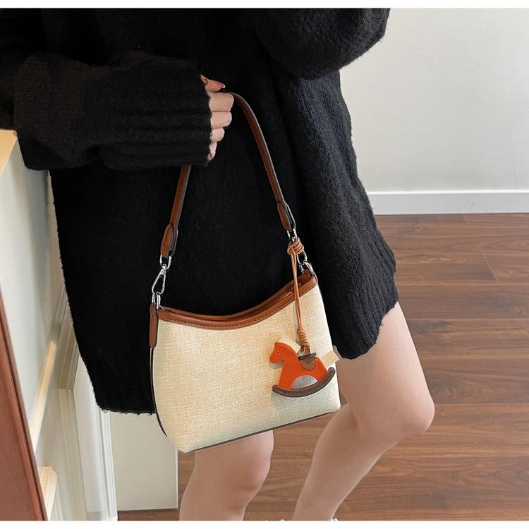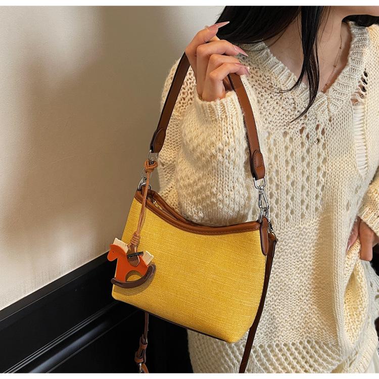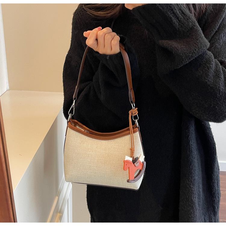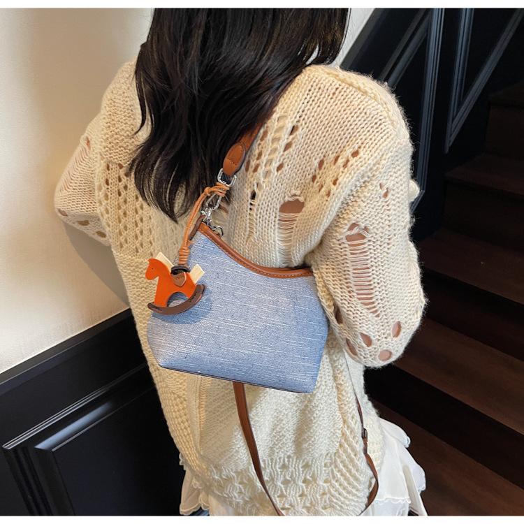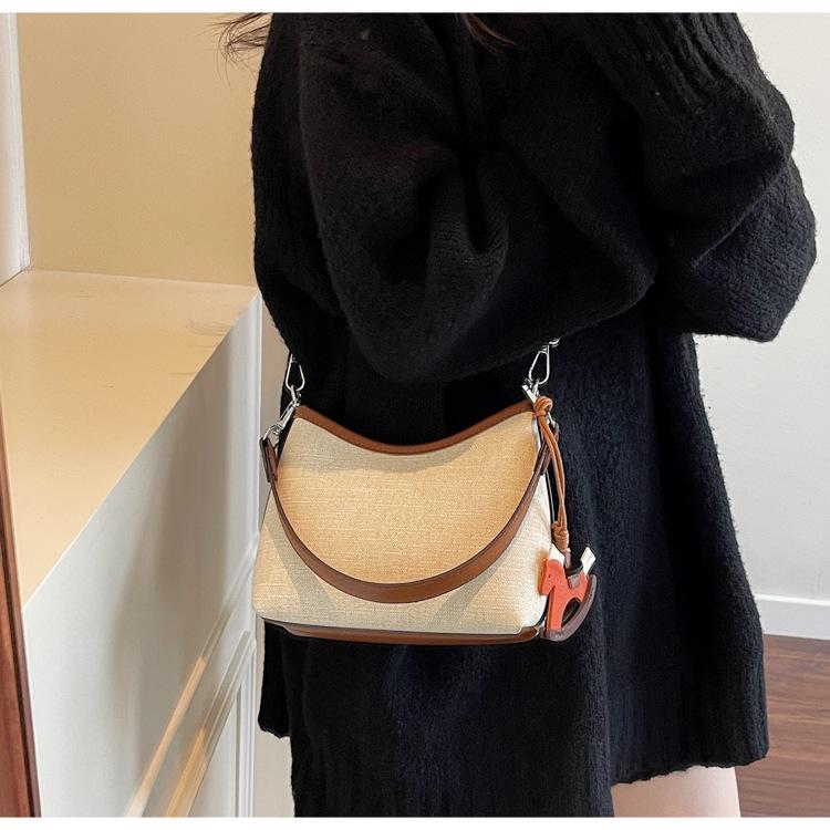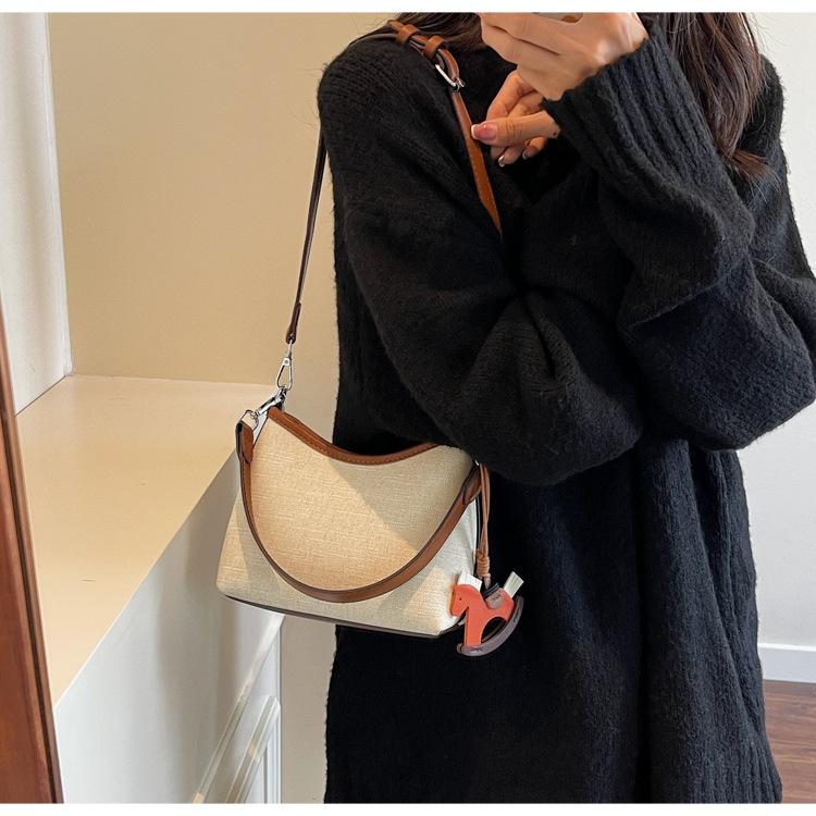 Bolso de Mano Nicho Estilo Coreano Transfronterizo Bolso de Axila Mujer 2025 Nuevo Simple Casual Bolso de Hombro Bloque de Color Bandolera Bolso Cubo