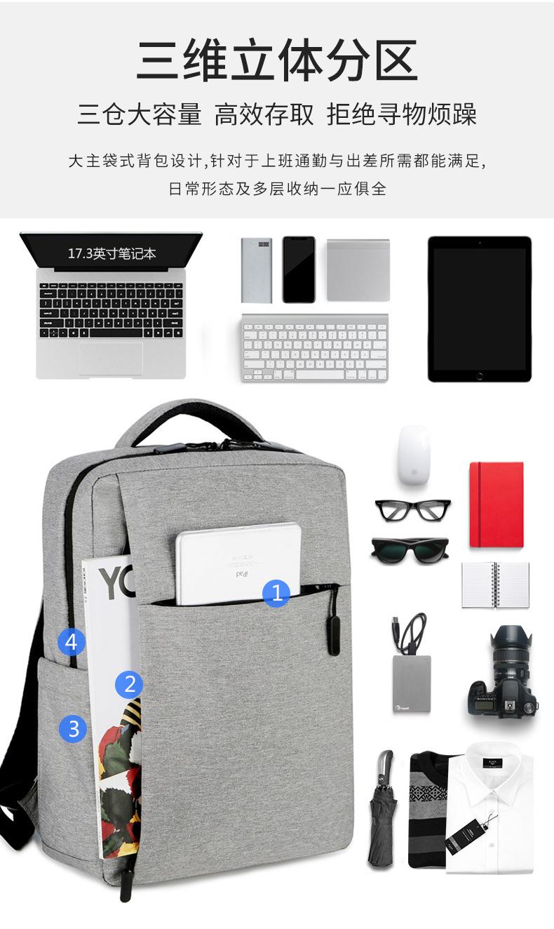 Nueva mochila de negocios transfronteriza para hombre, sencilla, multicapa, para laptop, viaje de negocios, carga USB, mochila de viaje