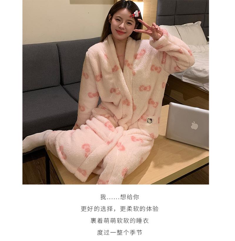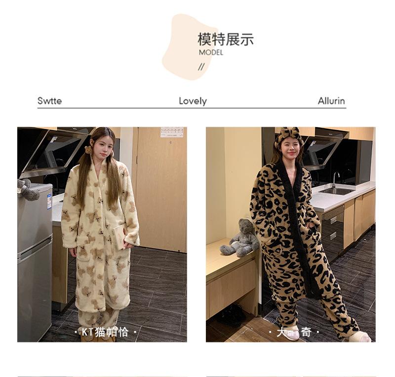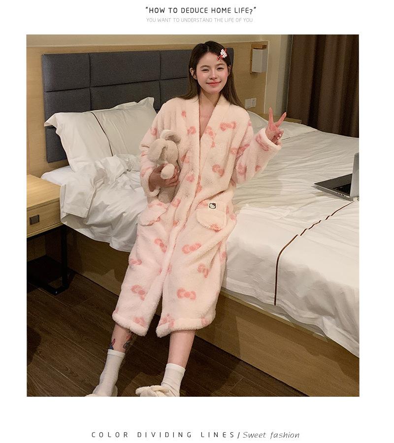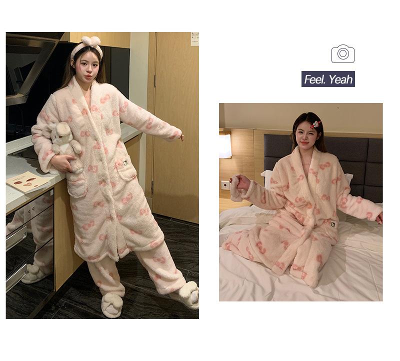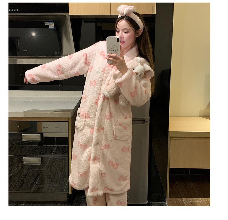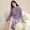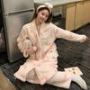 Camisón de terciopelo coral para mujer, traje largo de felpa para invierno, pijama grueso de terciopelo para invierno, bata de baño con funda exterior.