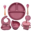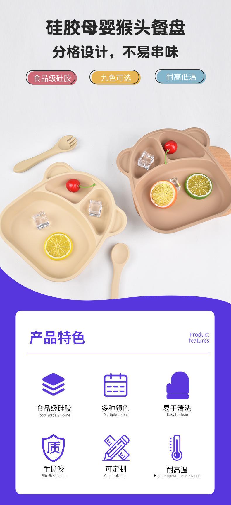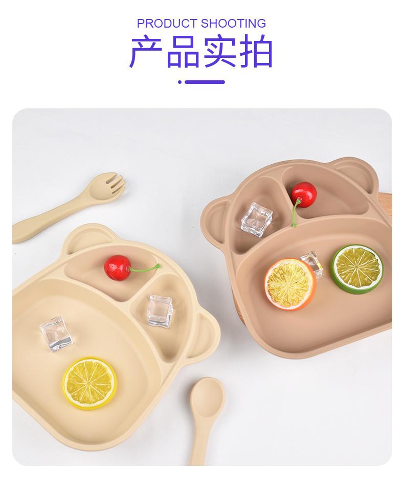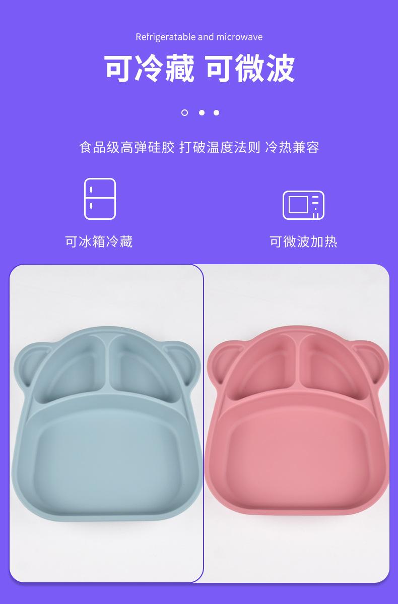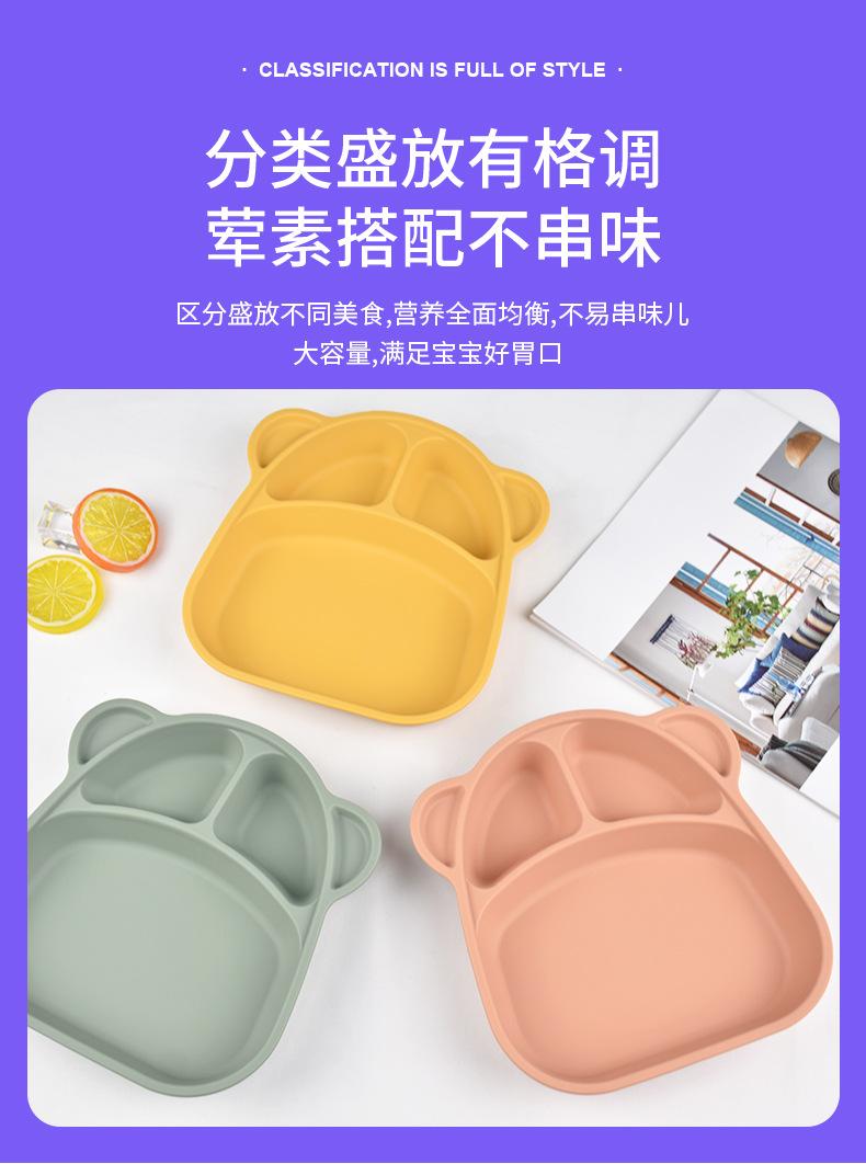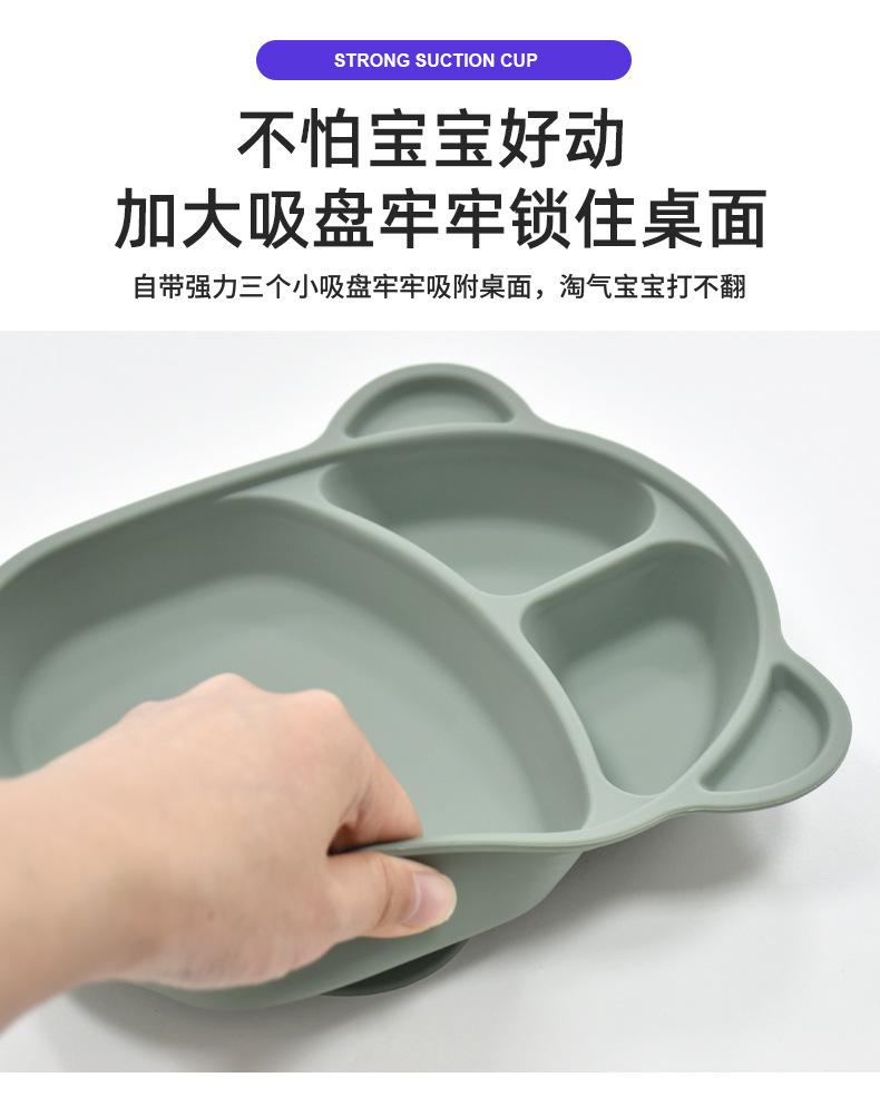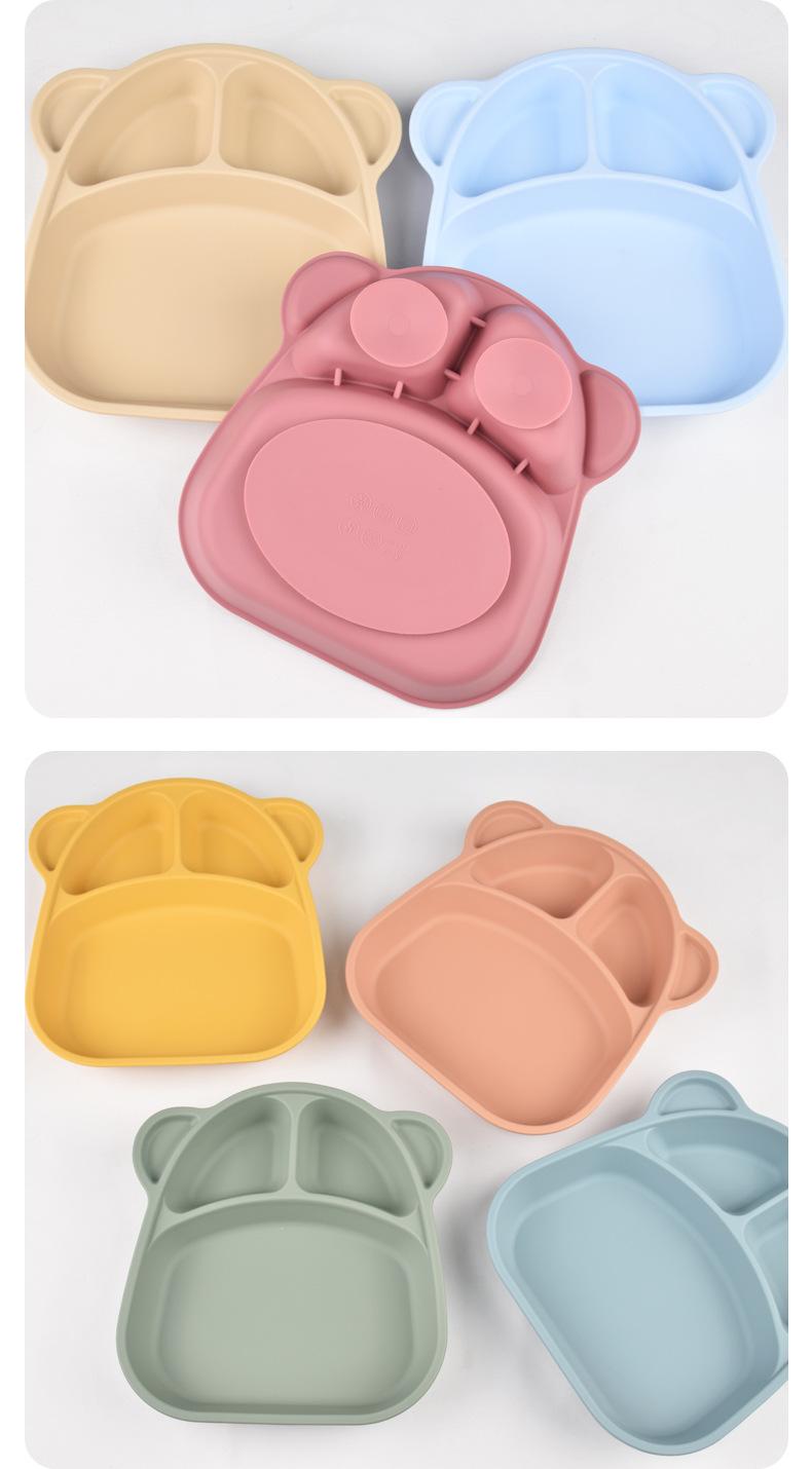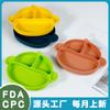 Plato de Silicona para Niños Transfronterizo Grado Alimenticio Plato/Tazón para el Destete del Bebé Plato Dividido para Bebé con Ventosa Vajilla a Prueba de Caídas