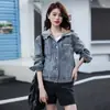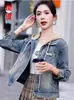 Chamarra de mezclilla de moda retro para mujer 2025 otoño nueva talla pequeña elegante talla grande chamarra con capucha top corto