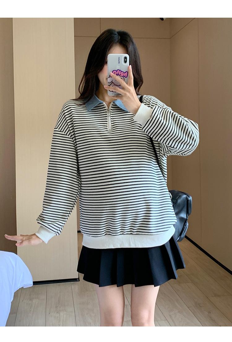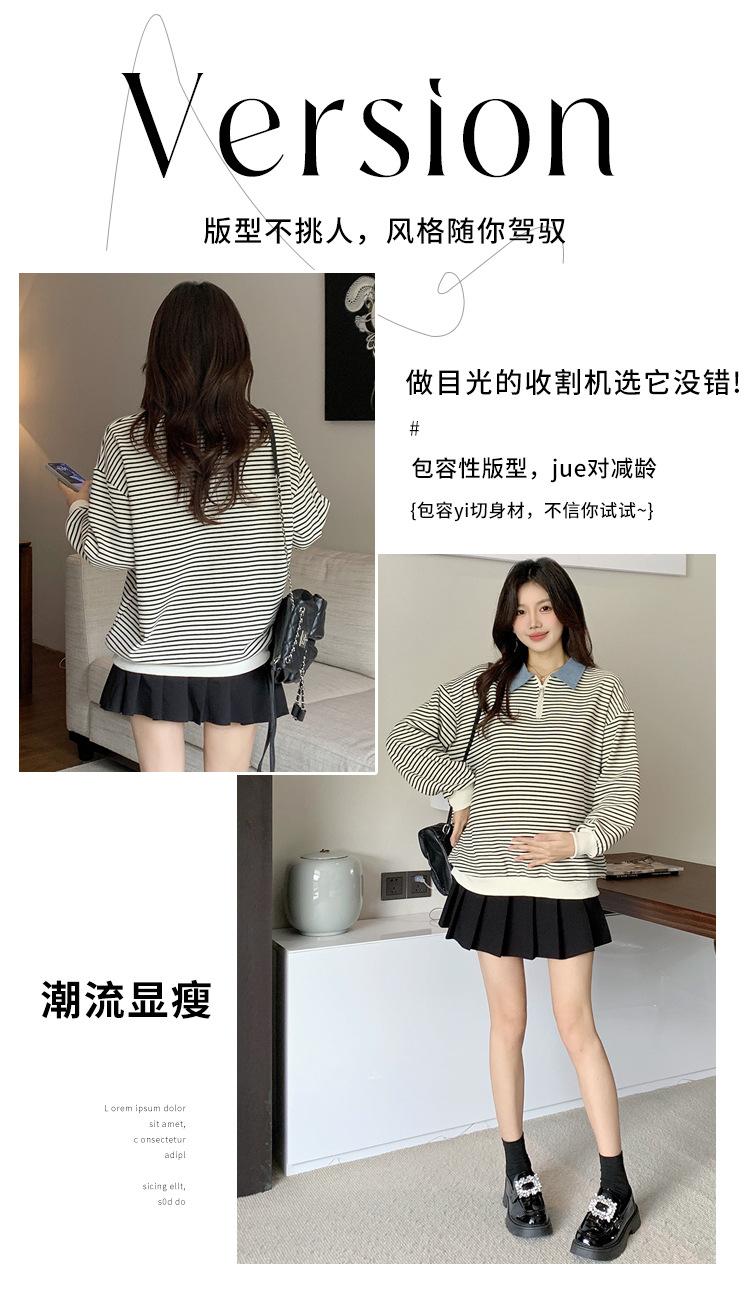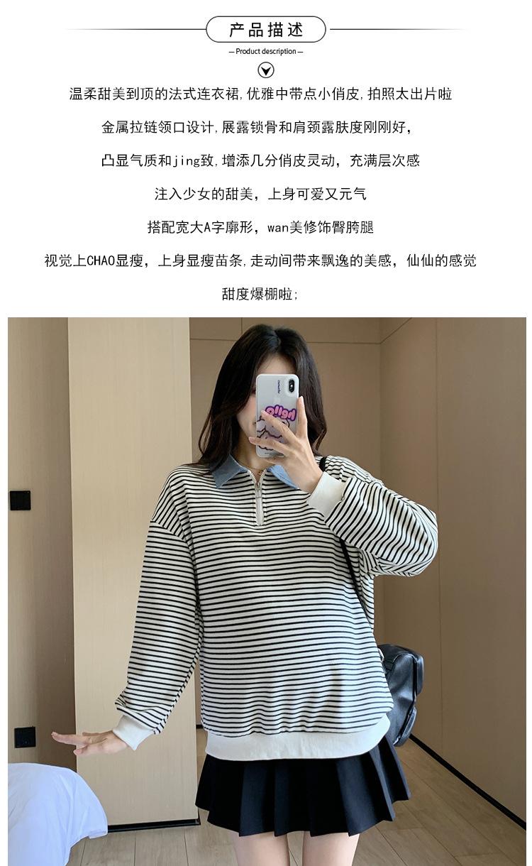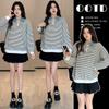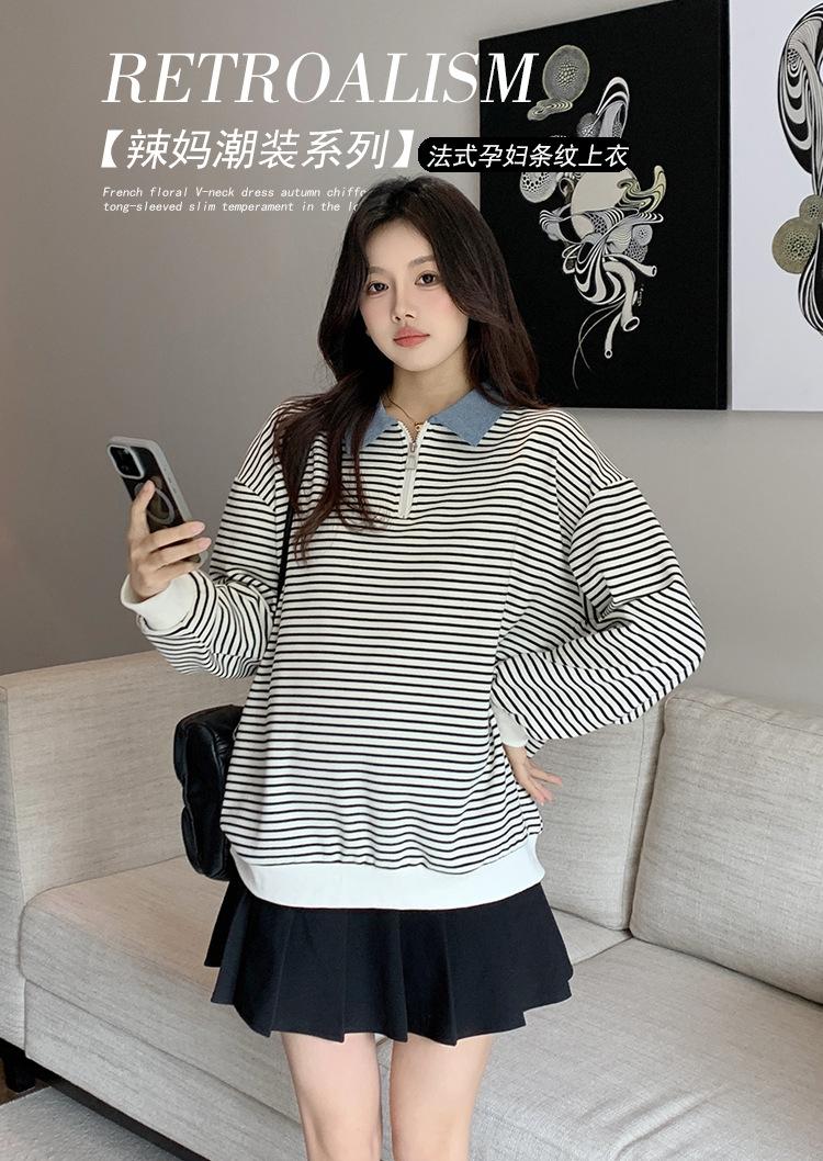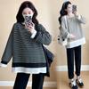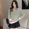 Sudadera Premamá Otoño e Invierno Rayada Holgada Manga Larga Talla Grande Top Versátil Cuello Redondo Jersey Premamá