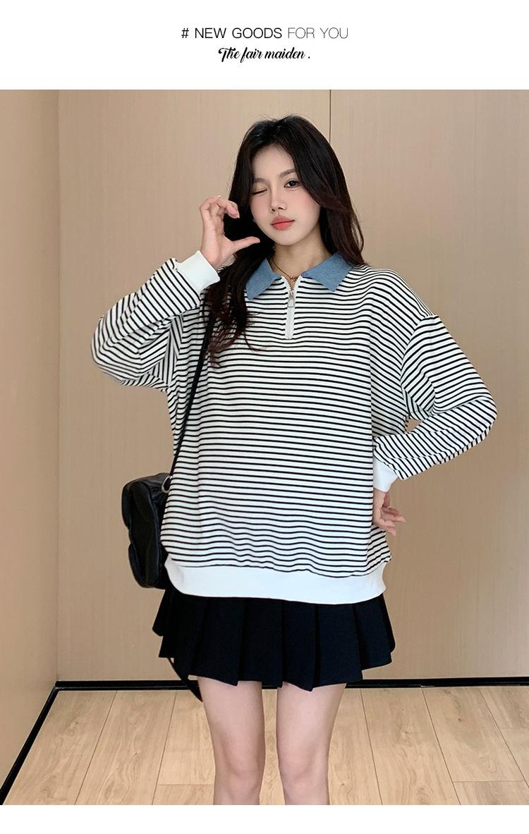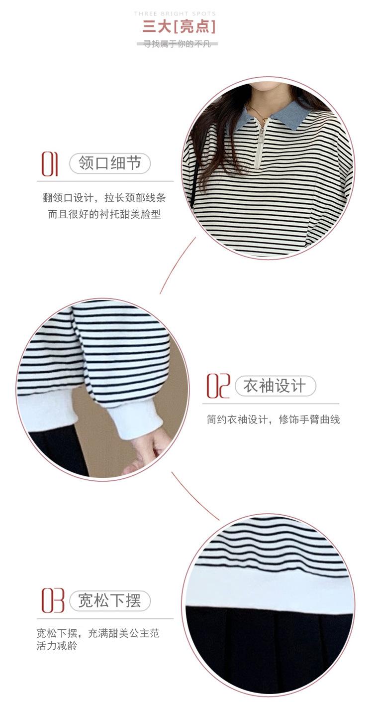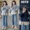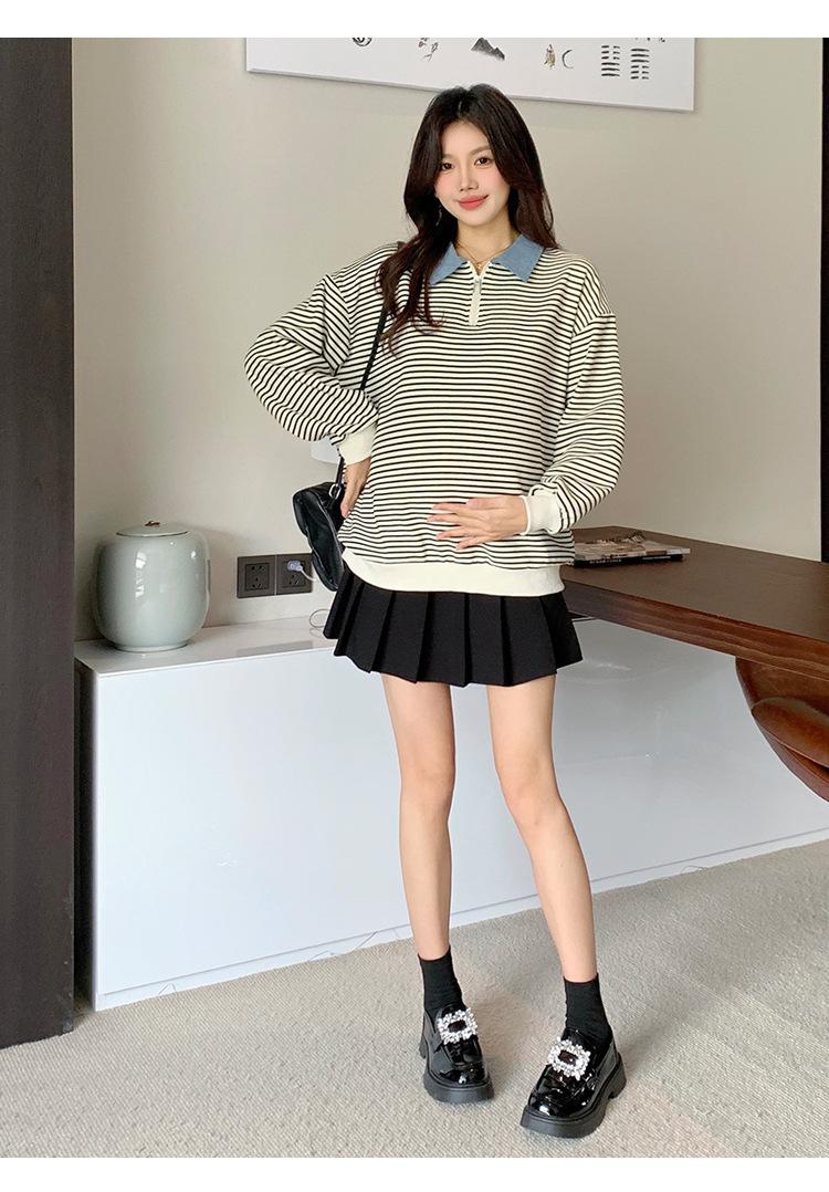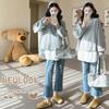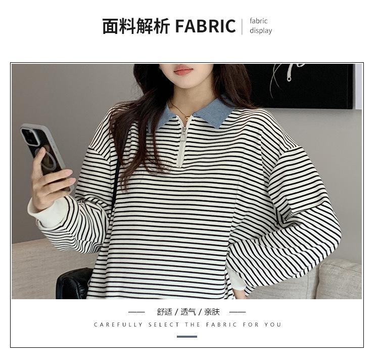 Sudadera Premamá Otoño e Invierno Rayada Holgada Manga Larga Talla Grande Top Versátil Cuello Redondo Jersey Premamá
