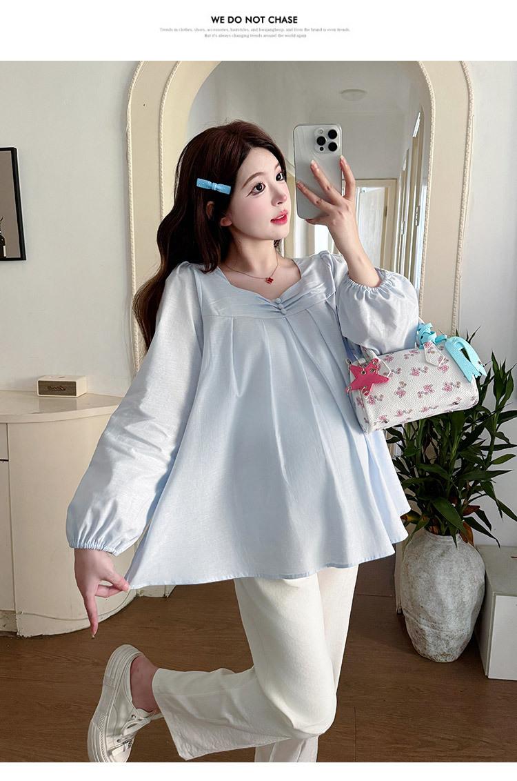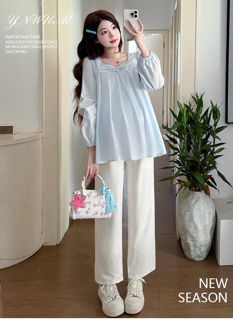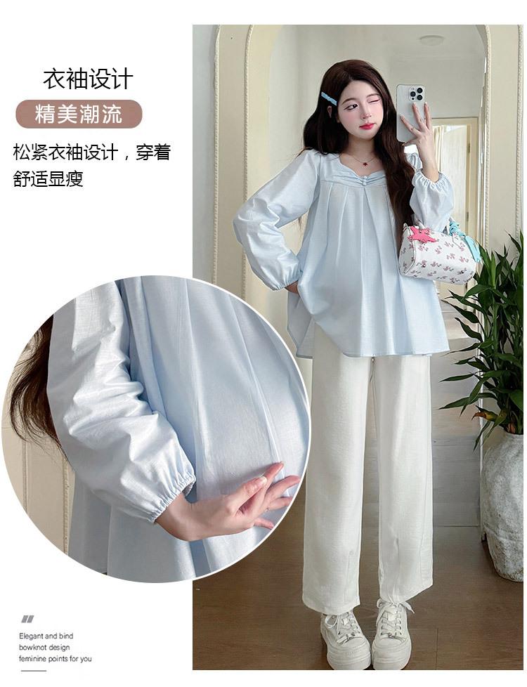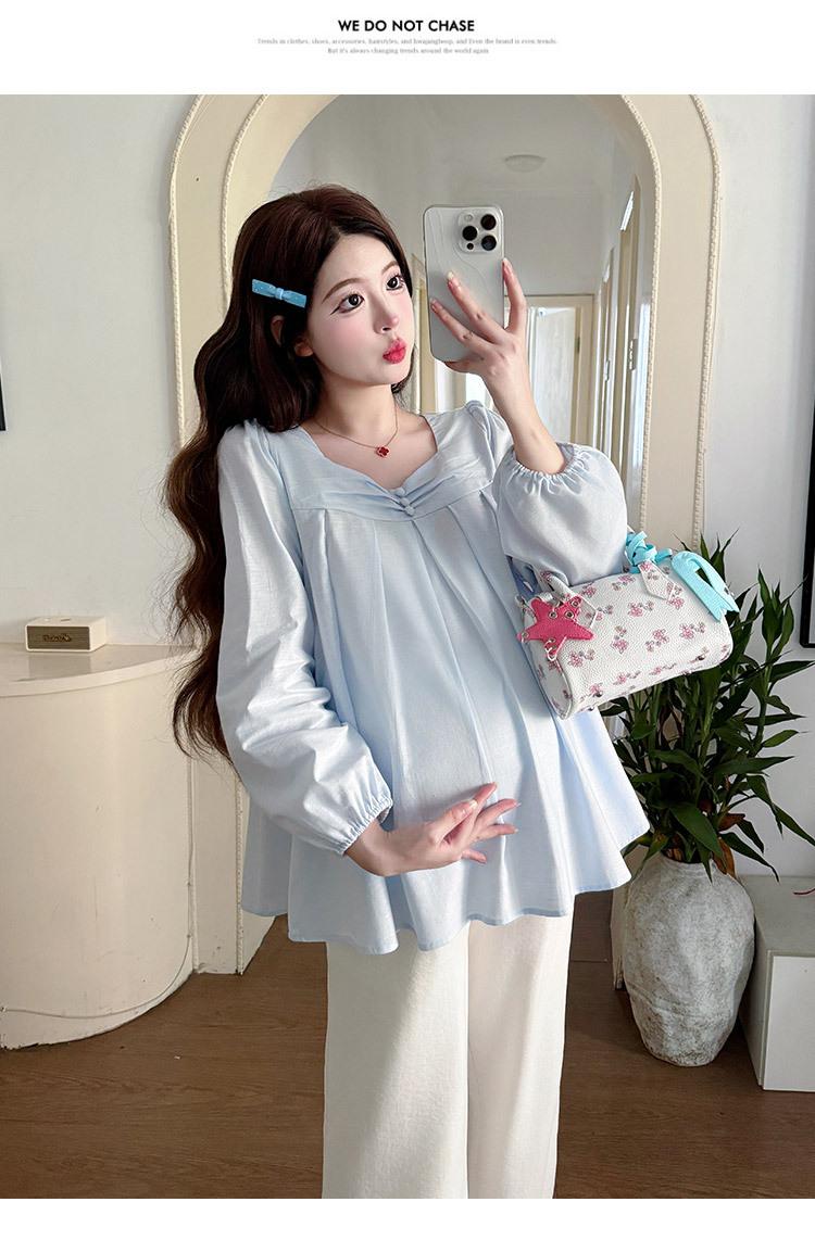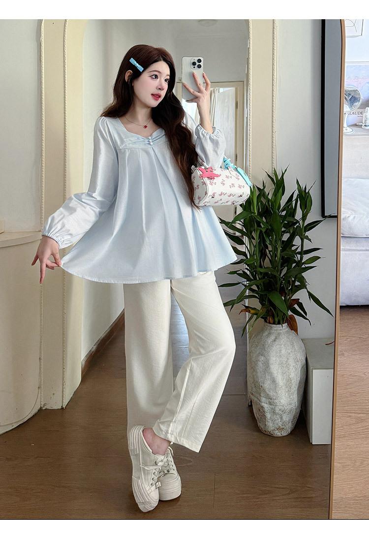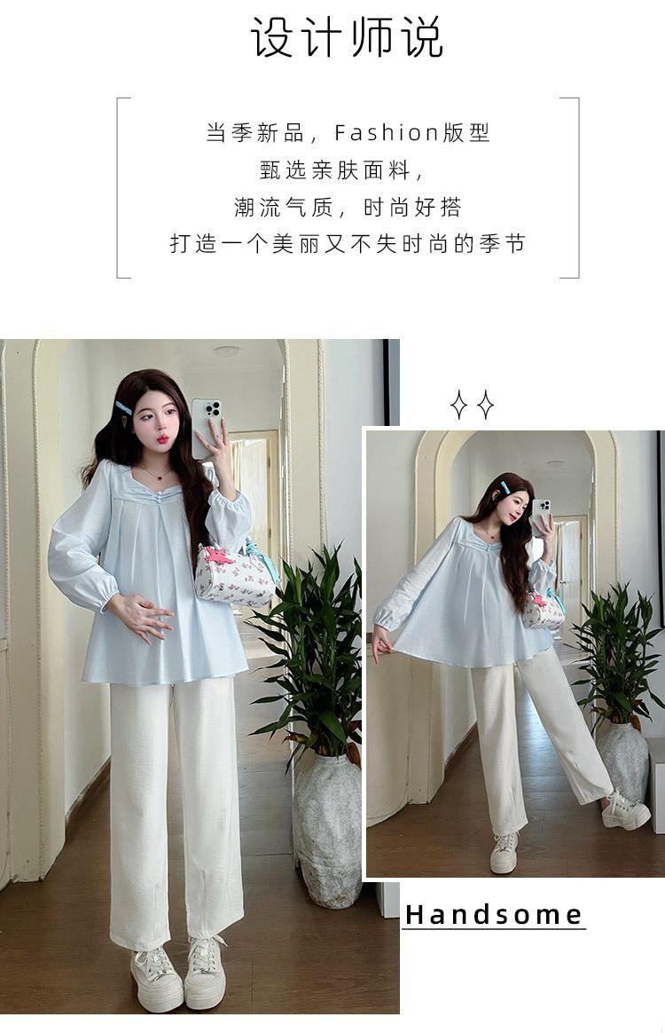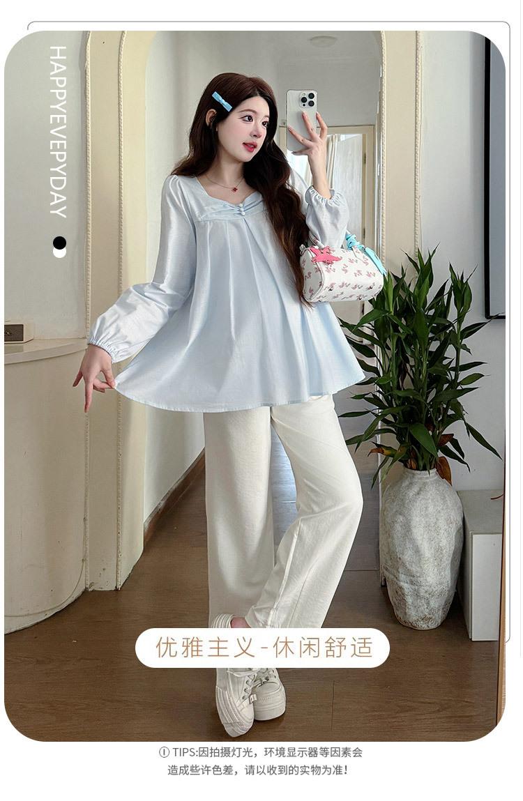 Ropa de Maternidad Temperamento Camisa Cuello Cuadrado Adelgazante Babydoll Manga Larga Top de Maternidad + Pantalones Casuales de Soporte para Vientre Set de Maternidad
