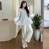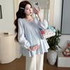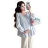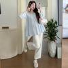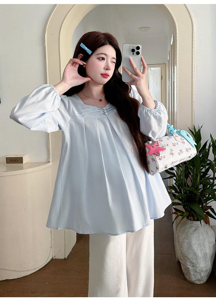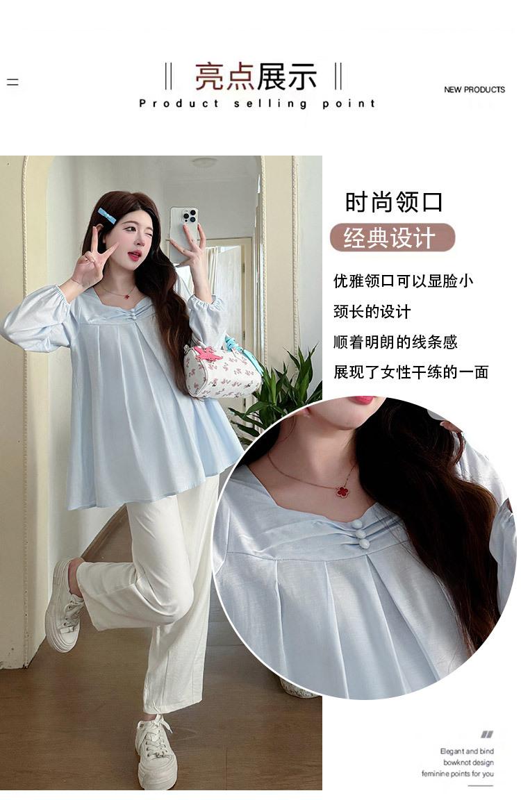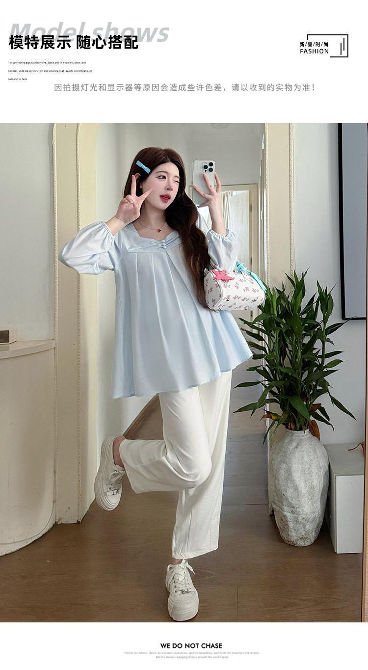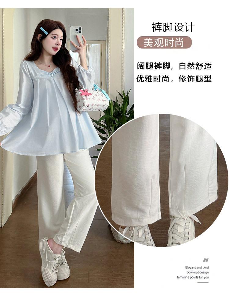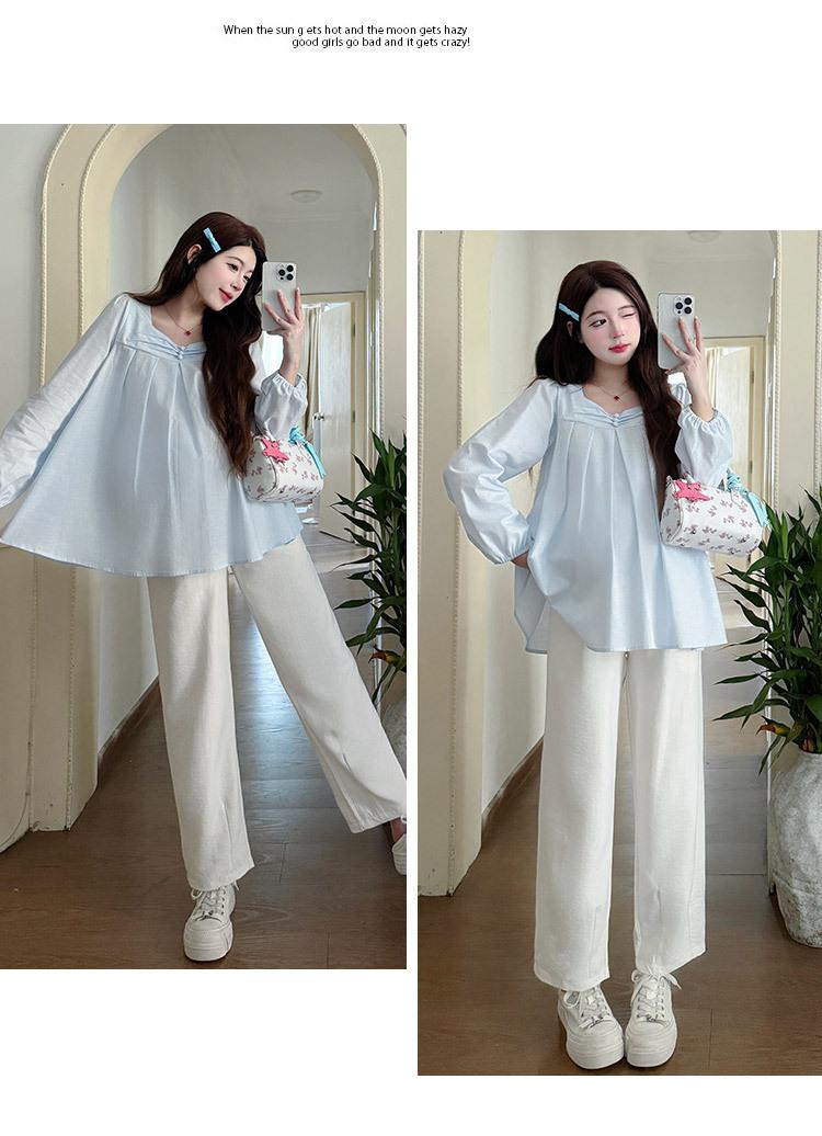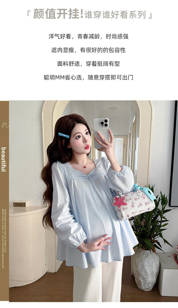 Ropa de Maternidad Temperamento Camisa Cuello Cuadrado Adelgazante Babydoll Manga Larga Top de Maternidad + Pantalones Casuales de Soporte para Vientre Set de Maternidad