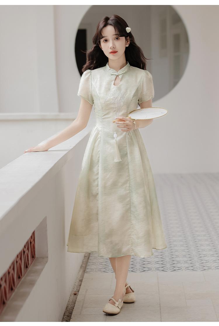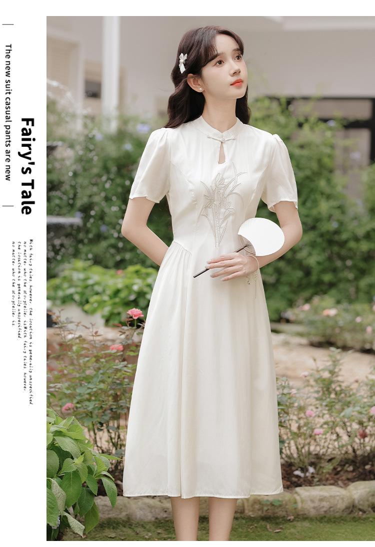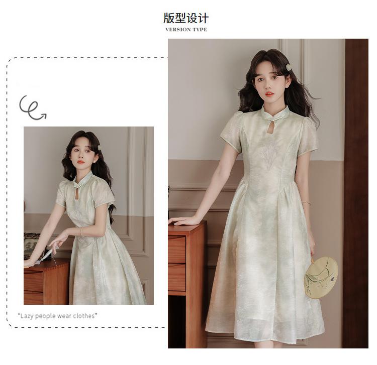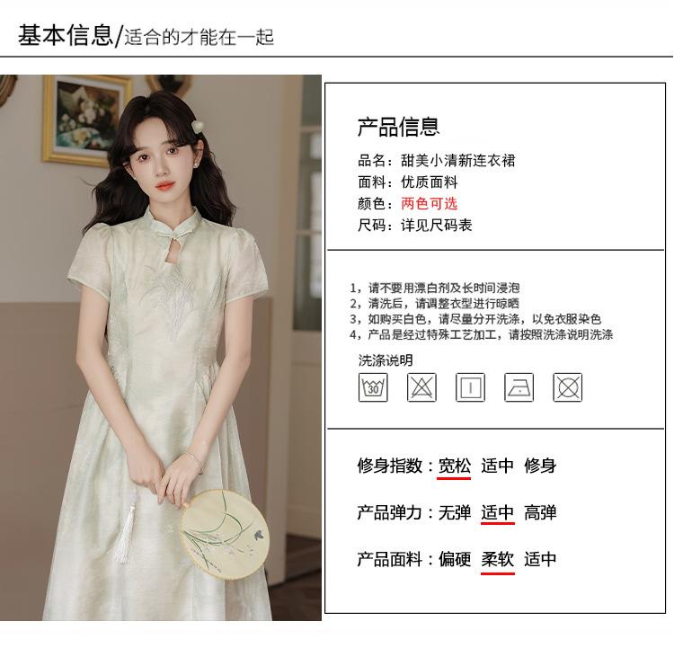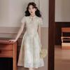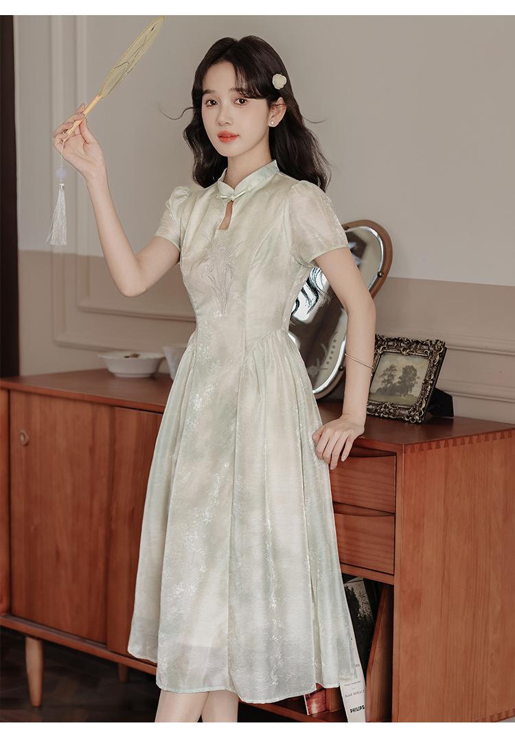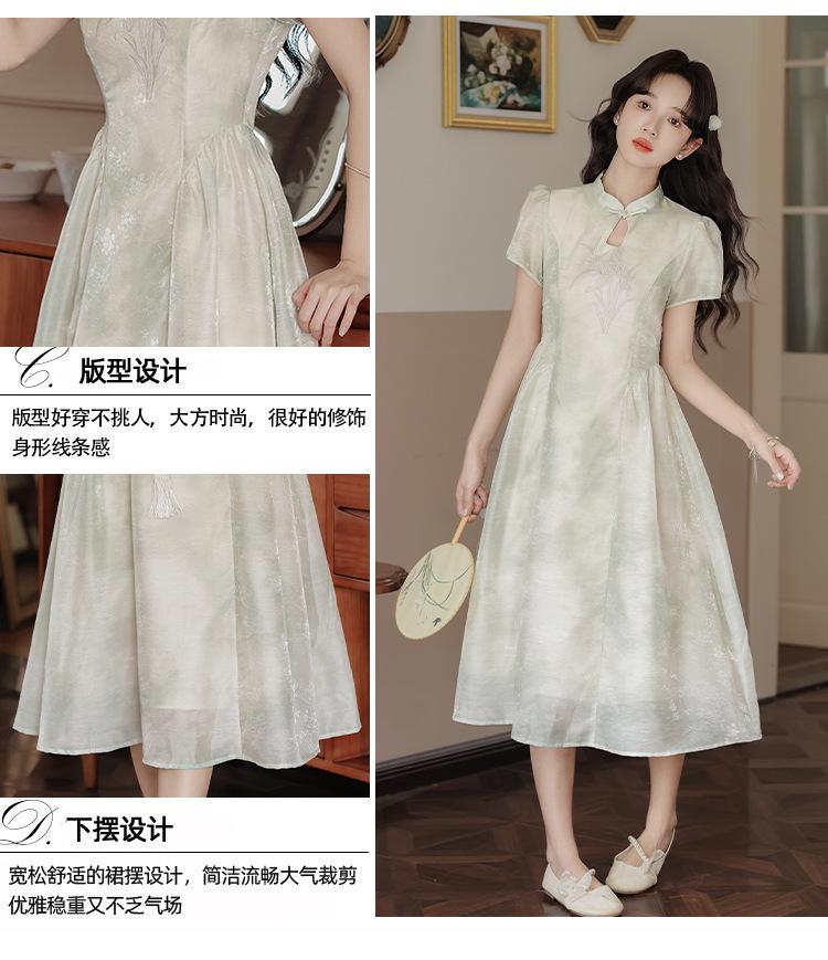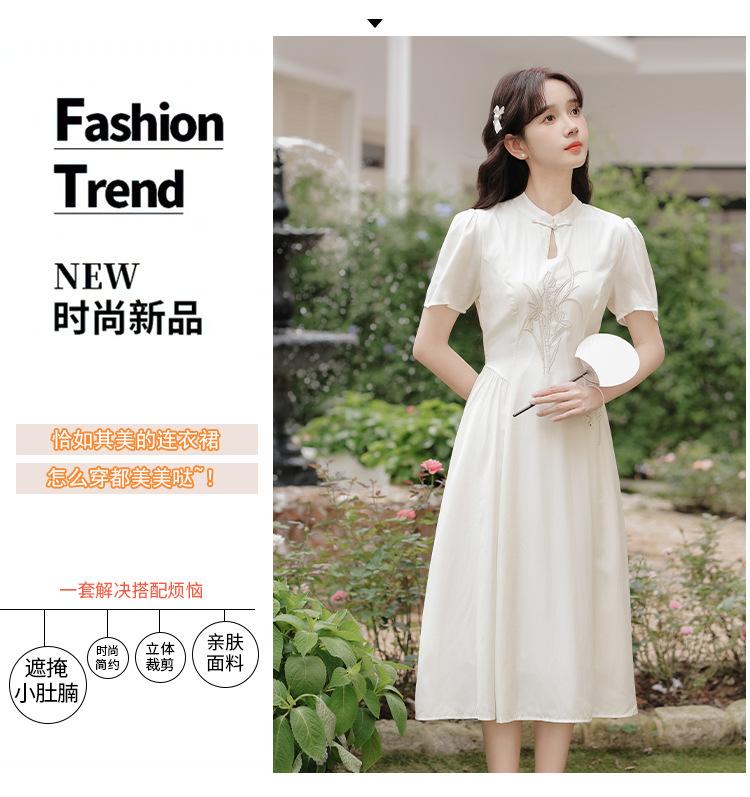 Ropa de Mujer 2025 Verano Trece Líneas Nuevo Estilo Nacional Nuevo Estilo Chino Temperamento Suave Vestido Largo Adelgazante Vestido de Manga Corta
