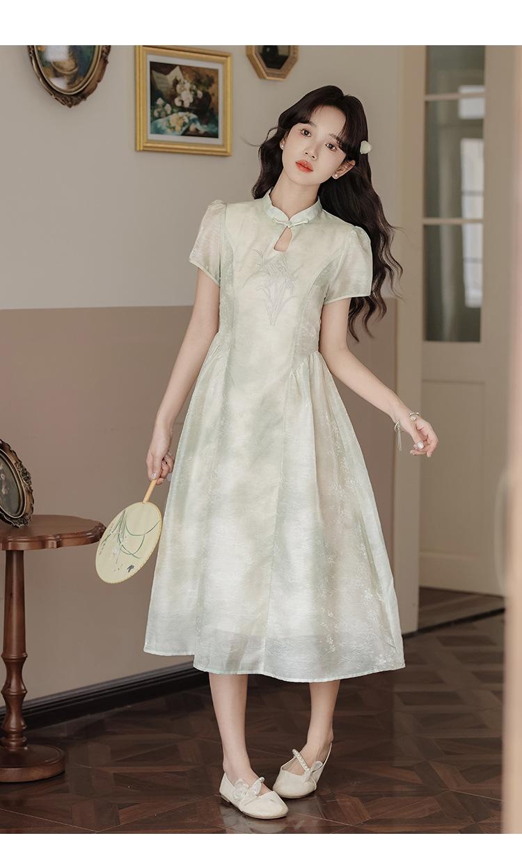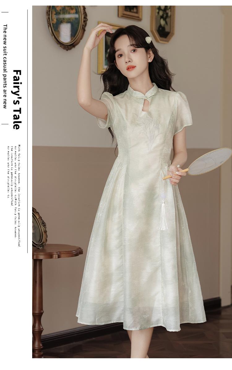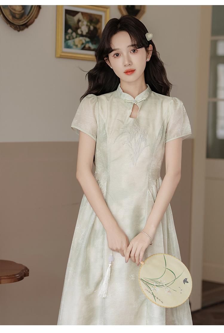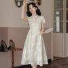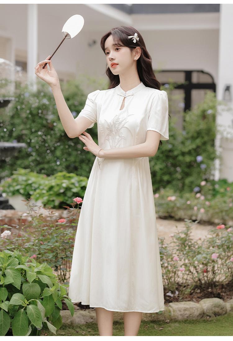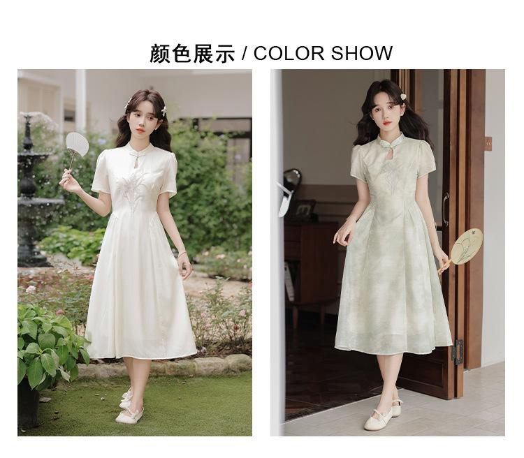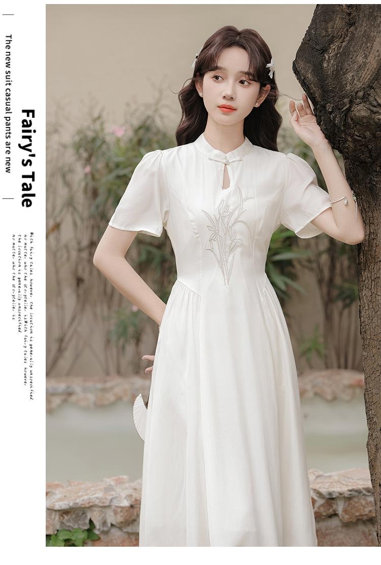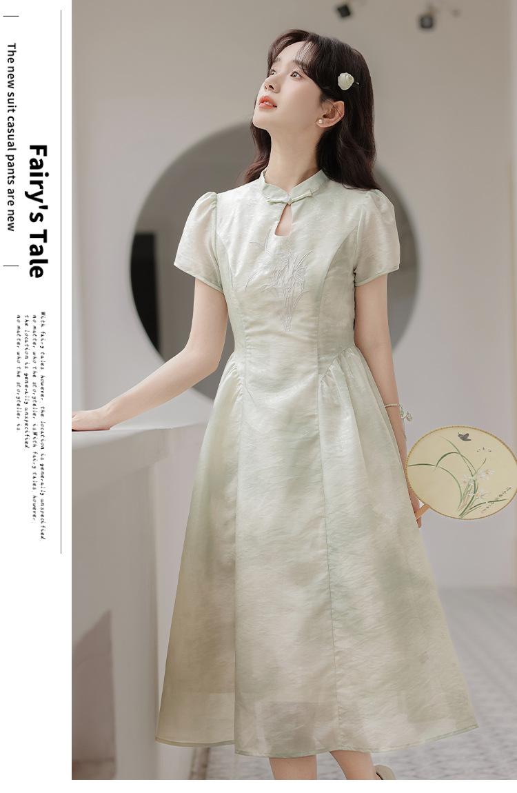 Ropa de Mujer 2025 Verano Trece Líneas Nuevo Estilo Nacional Nuevo Estilo Chino Temperamento Suave Vestido Largo Adelgazante Vestido de Manga Corta