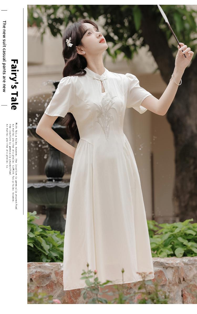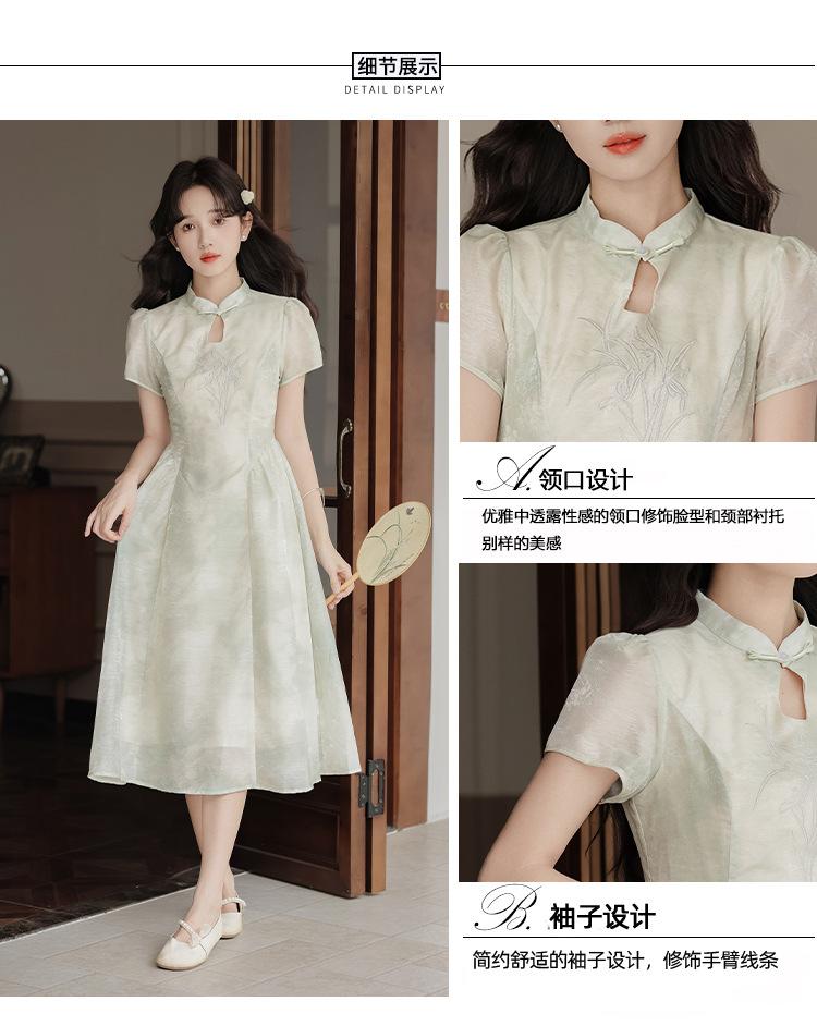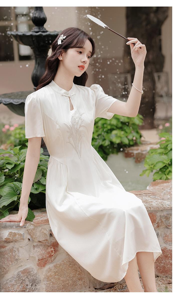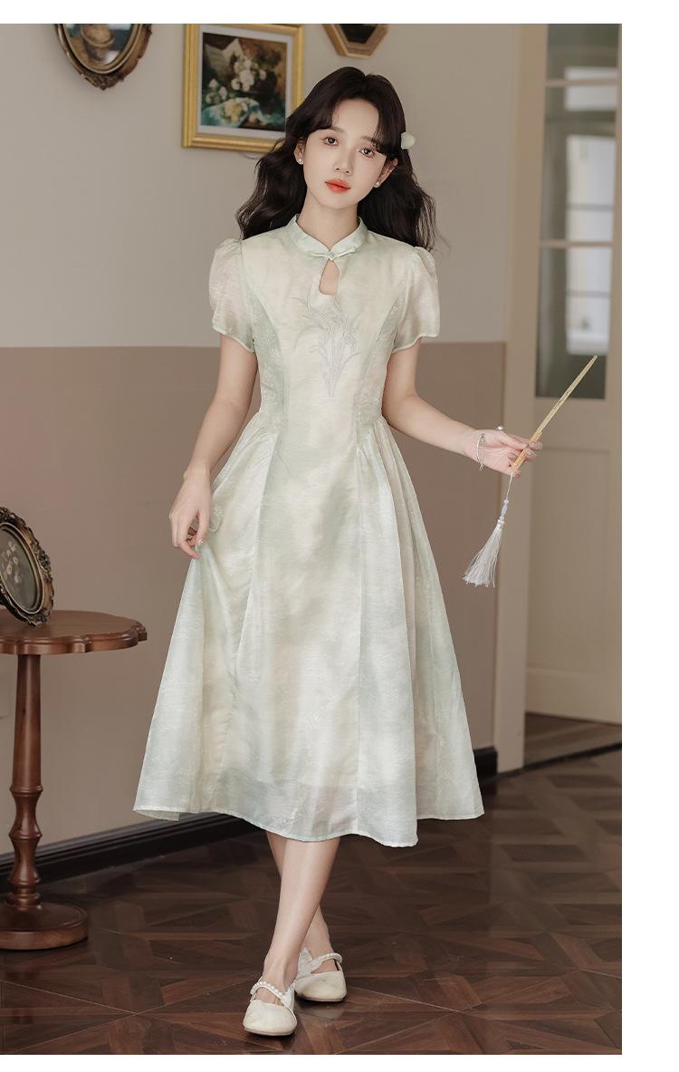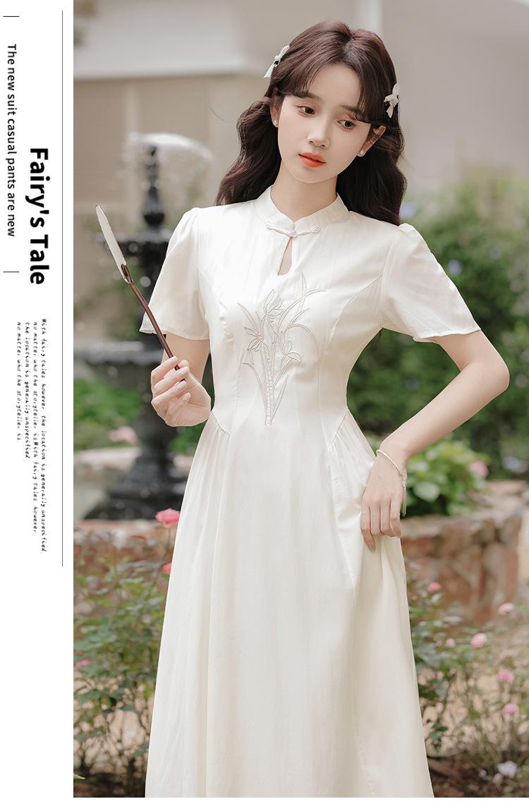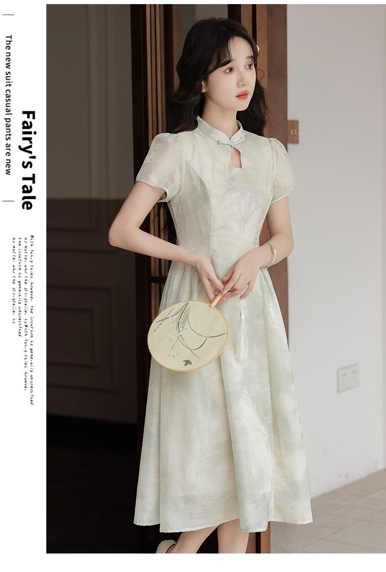 Ropa de Mujer 2025 Verano Trece Líneas Nuevo Estilo Nacional Nuevo Estilo Chino Temperamento Suave Vestido Largo Adelgazante Vestido de Manga Corta