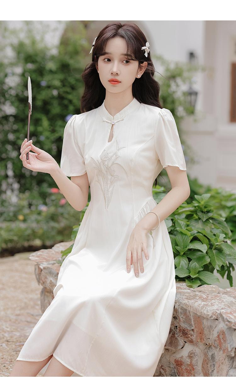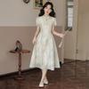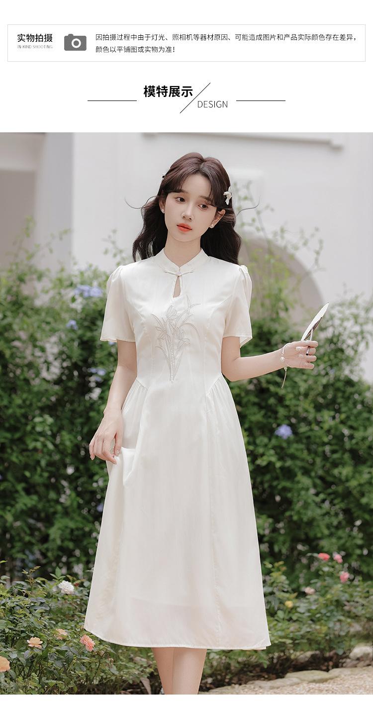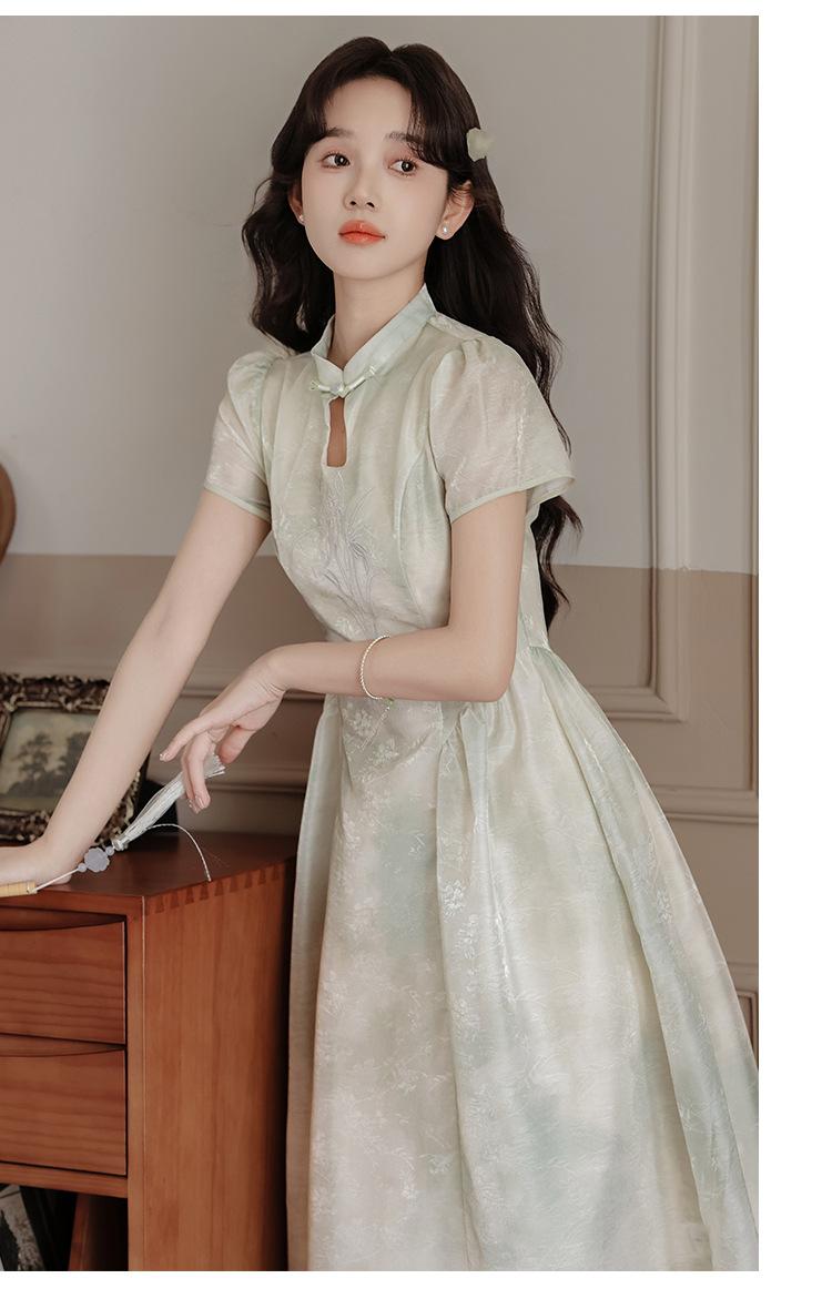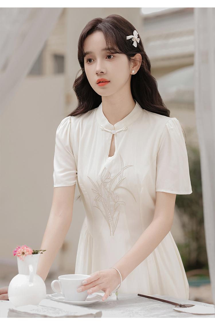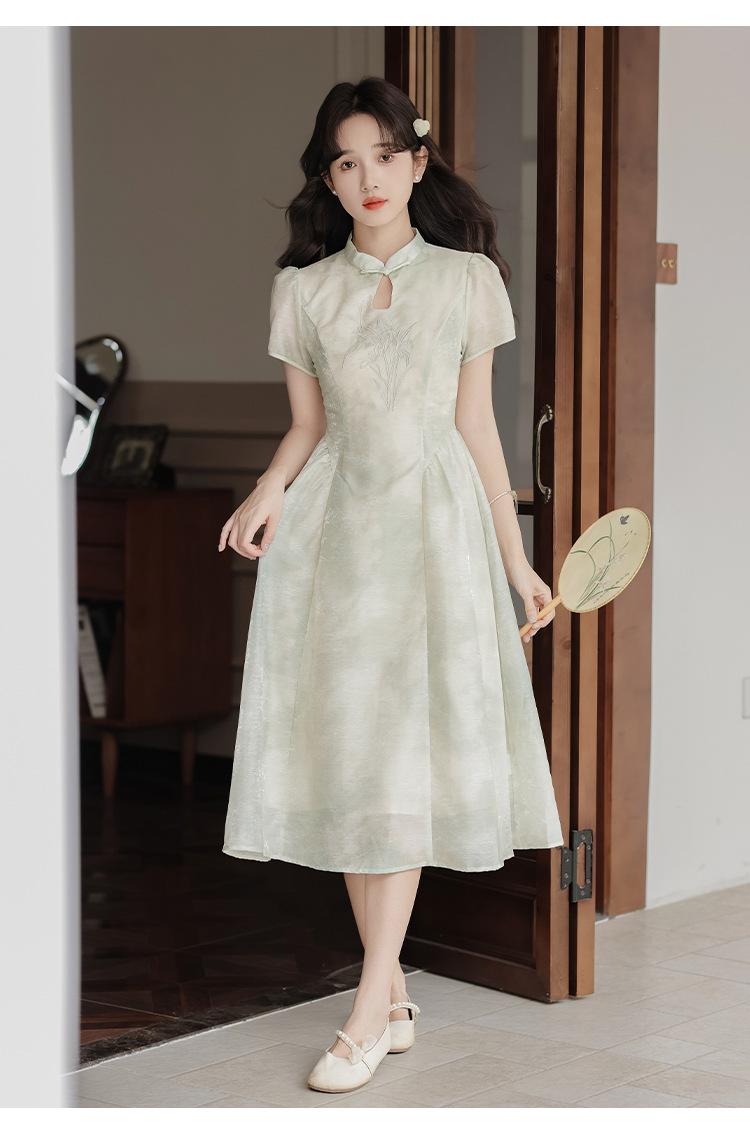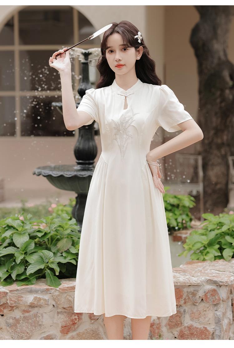 Ropa de Mujer 2025 Verano Trece Líneas Nuevo Estilo Nacional Nuevo Estilo Chino Temperamento Suave Vestido Largo Adelgazante Vestido de Manga Corta