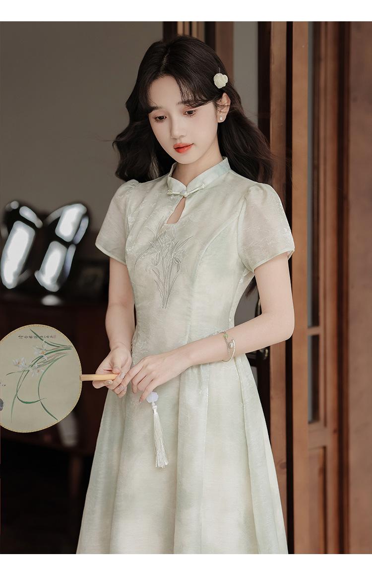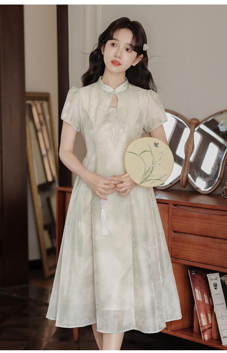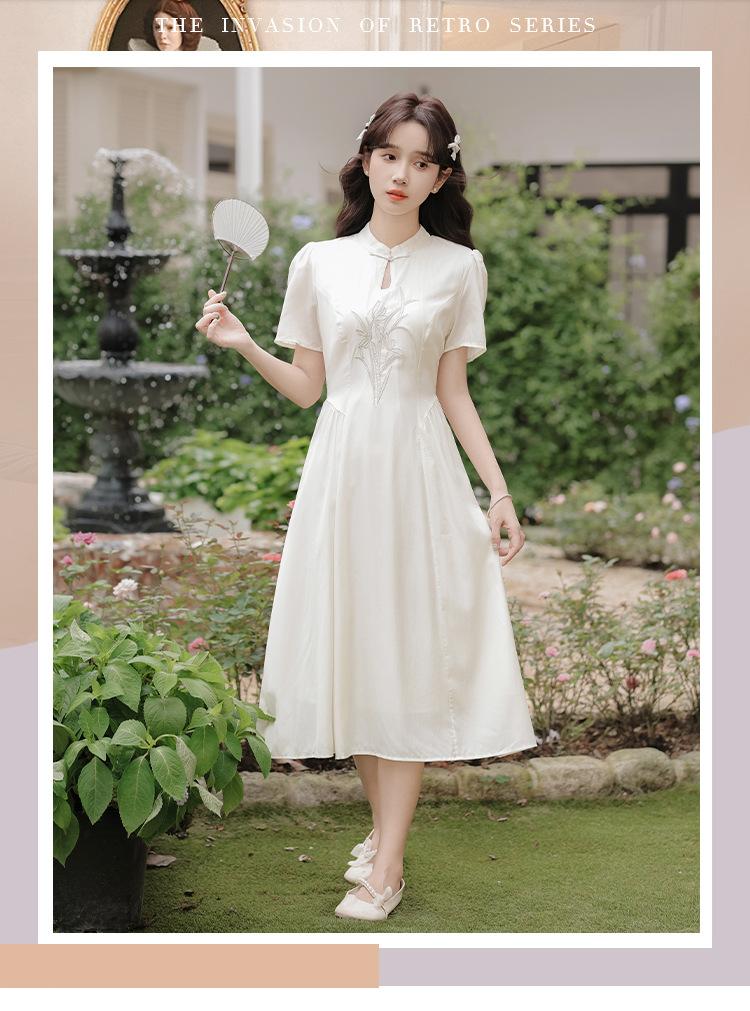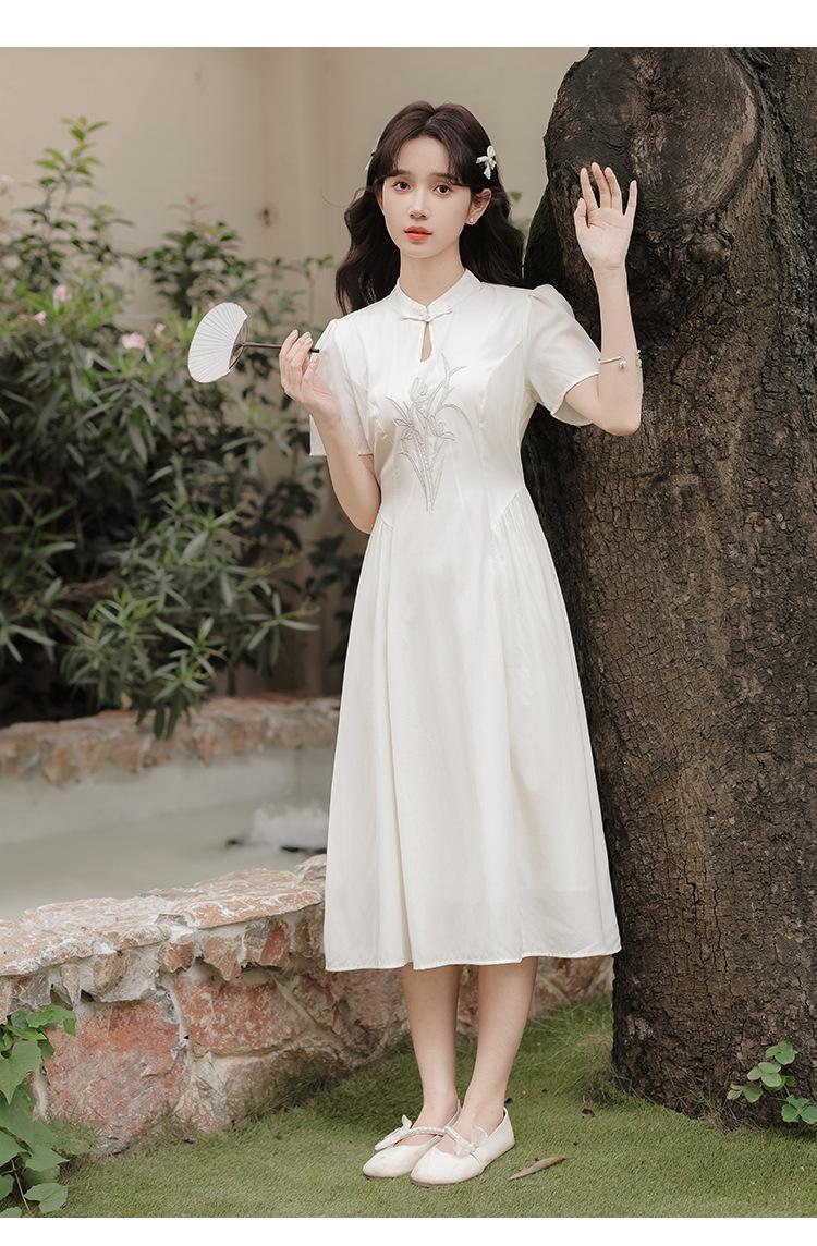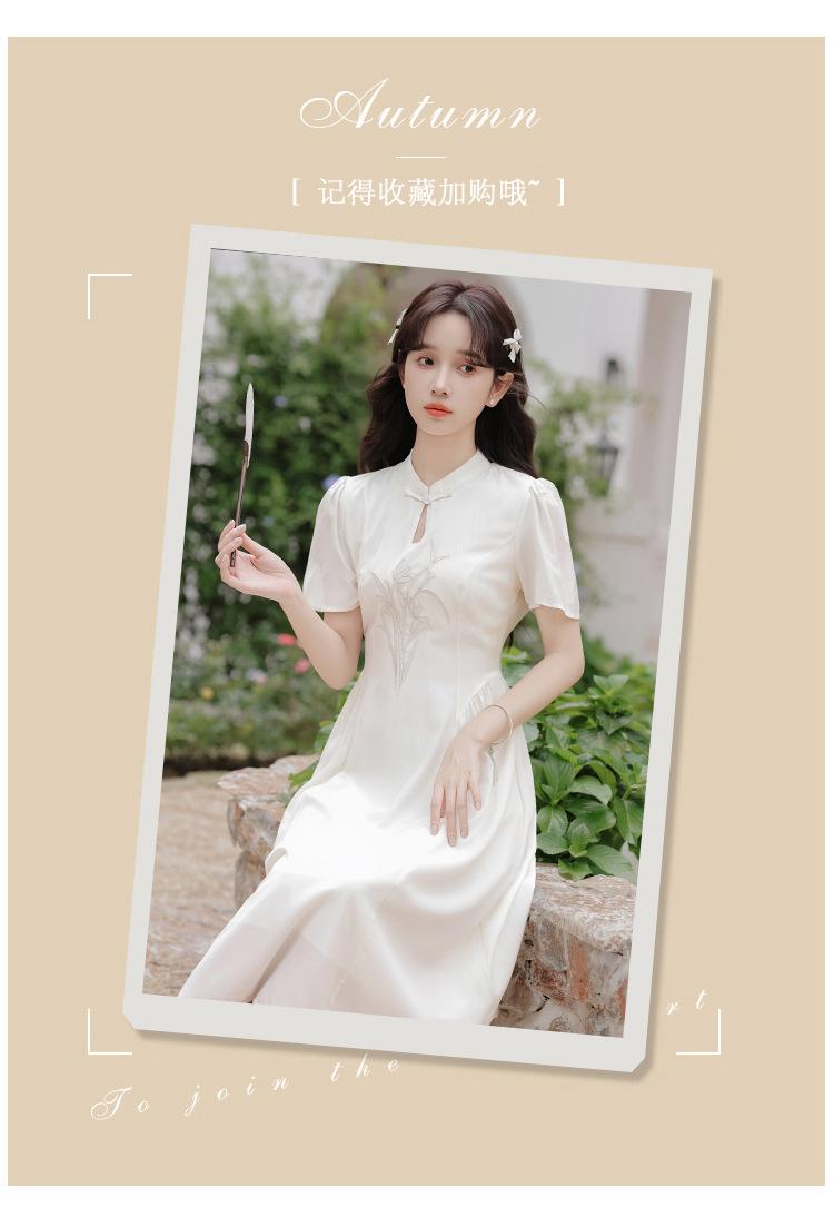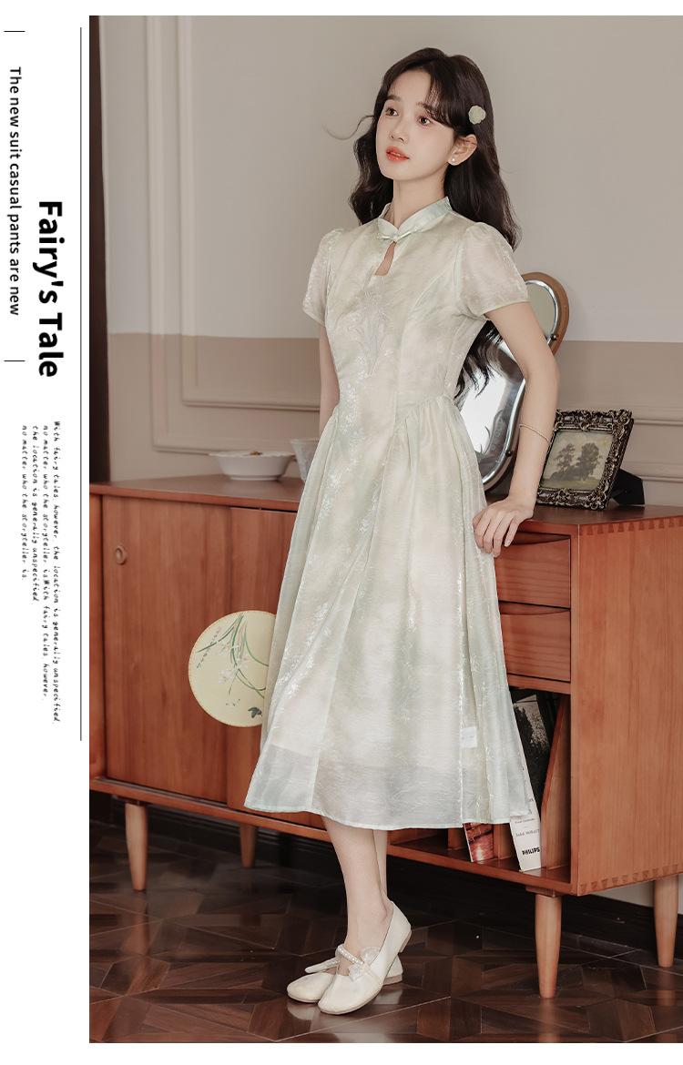 Ropa de Mujer 2025 Verano Trece Líneas Nuevo Estilo Nacional Nuevo Estilo Chino Temperamento Suave Vestido Largo Adelgazante Vestido de Manga Corta